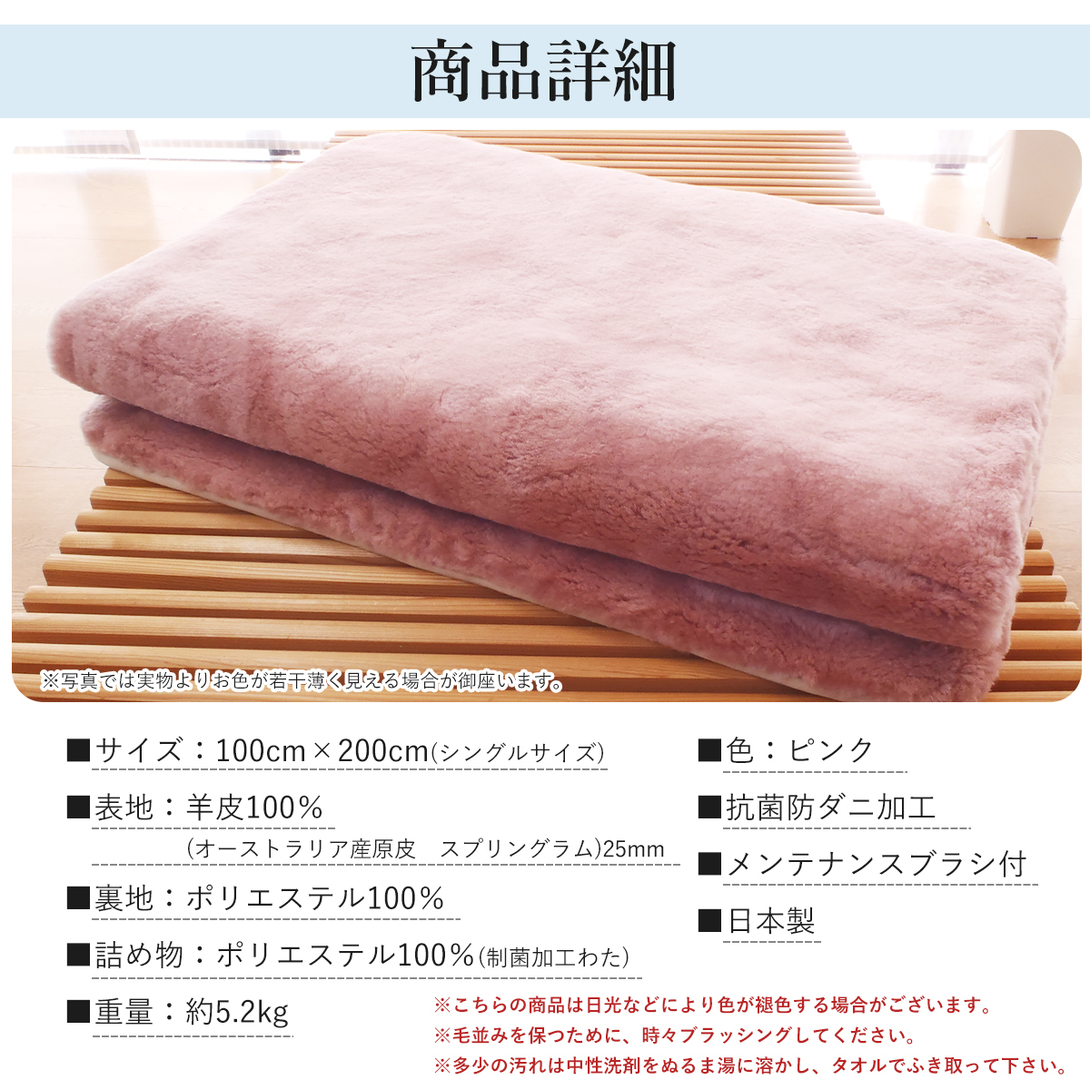 ロマンス小杉 ムートンシーツ シングル オーストラリア産メリノ スプリングラム ブラシ付 25mm 日本製 ムートン