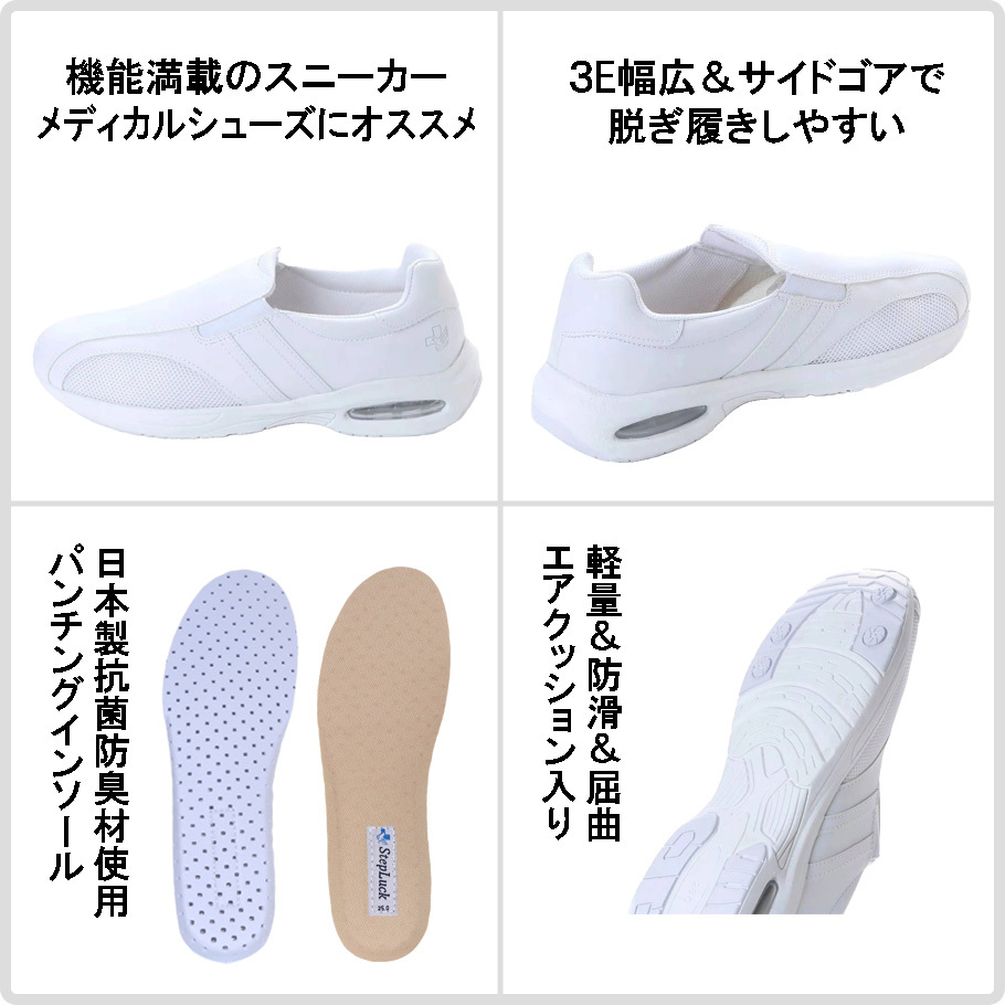 ナースシューズ メディカルシューズ オフィスシューズ ルームシューズ スリッポン スニーカー 抗菌 消臭 メンズ レディース 17548-wht-265
