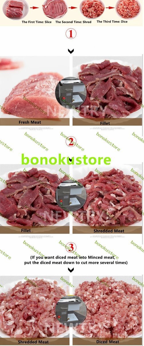 b>★ご了承: 本店には一年安心保障があります。何かご不明やお気づきの点がございましたら、お気軽にご連絡ください。 ★仕様: モデル:QX 寸法:450mm*320mm*430mm パワー:550W 切削厚さ:2.5mm 処理速度:250kg/h 入口の長さ:約90mm 入口の寸法:9*8cm 電圧:110V/60Hz 重量:33kg★また、 1.この電動スライサーは骨や冷凍肉の切断には適していません。これは、主に丸い角に切断するために使用され、四角形に切断するのには適していません。★大切なこと: 購入する前に、仕様をぜひご確認ください。 また、お支払いの際、配送する住所または電話番号もぜひご確認ください。 ★本店について: Newtryは主にDIY・工具・ガーデン/ホーム&キッチン/文房具・オフィス用品/産業・研究開発用品などを販売するお店です。お客様に最高の商品とサービスを提供することを目指しています!