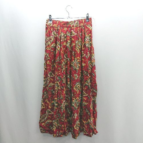 ◇ Θ Worthington 総柄 ロング丈 フレア スカート サイズ10 レッド系 レディース E