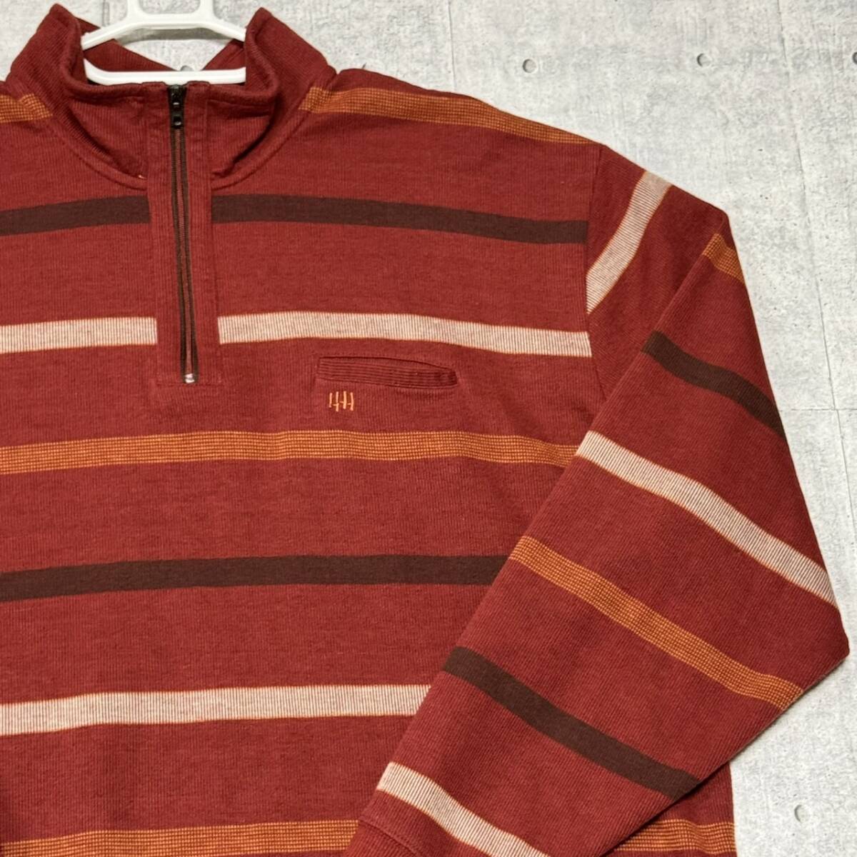極美品 KANSAI YAMAMOTO HOMME ハーフジップ スウェット  カンサイヤマモト オム ボーダー ポケット ポロシャツ 大きいサイズ 早4879