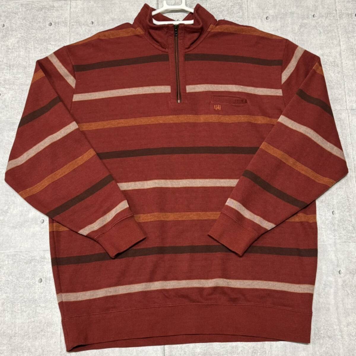 極美品 KANSAI YAMAMOTO HOMME ハーフジップ スウェット  カンサイヤマモト オム ボーダー ポケット ポロシャツ 大きいサイズ 早4879 4L ビッグシルエット 伸縮素材 使用感薄い美品
