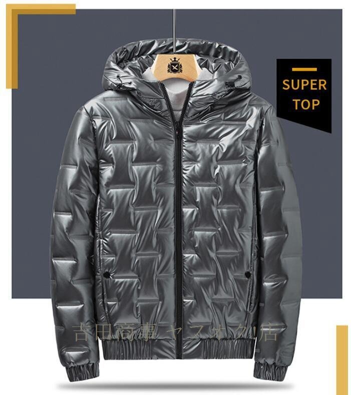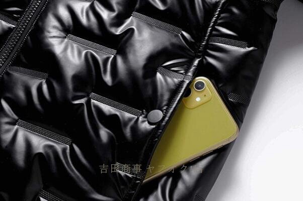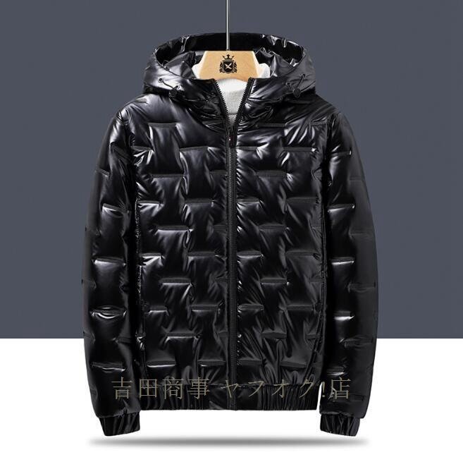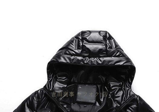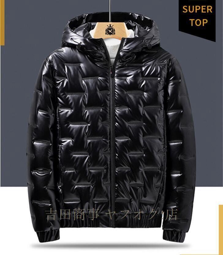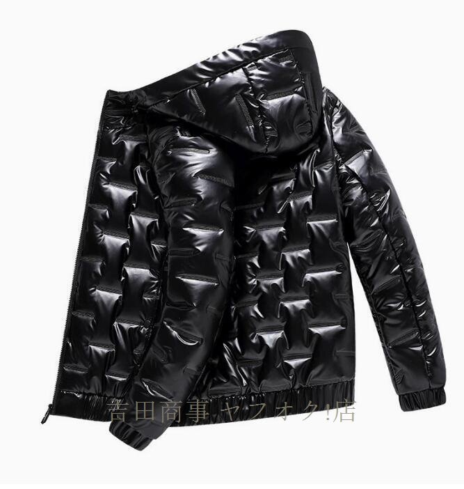 ☆新品中綿ジャケット ジャンパー 中綿コート アウター ブルゾン カジュアル メンズ エナメル 防寒 防水フード付き秋冬コーデ 3XL