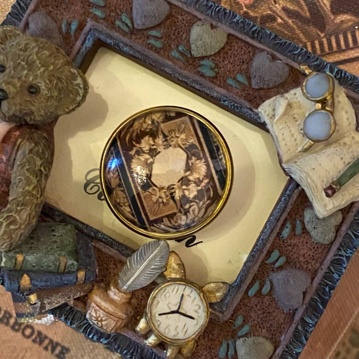 【着物 ハンドメイド ガラス 帯留め|和洋折衷のアクセントに オリジナルデザイン アンティークブラウンが織りなす、クラシカルな装飾模様。 GK-33】
