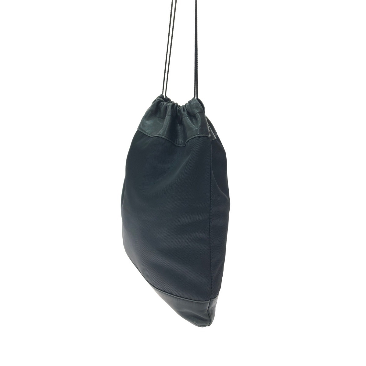 ▼▼ ISSEY MIYAKE イッセイミヤケ ユニセックス 巾着バッグ ショルダーポーチ ナイロン×レザー ブラック やや傷や汚れあり