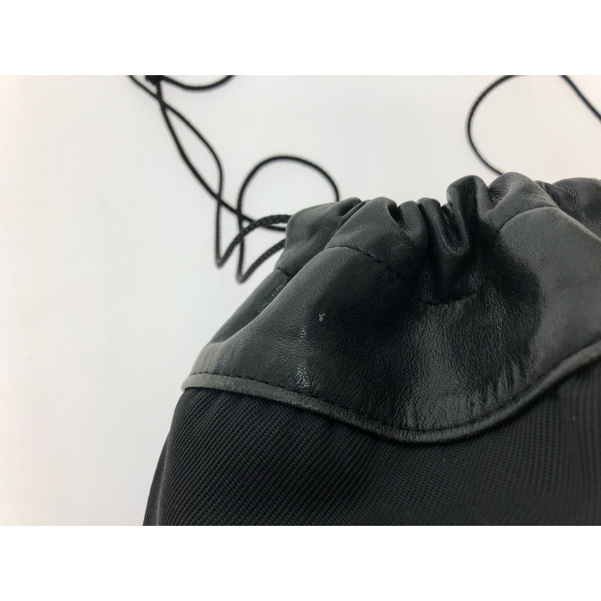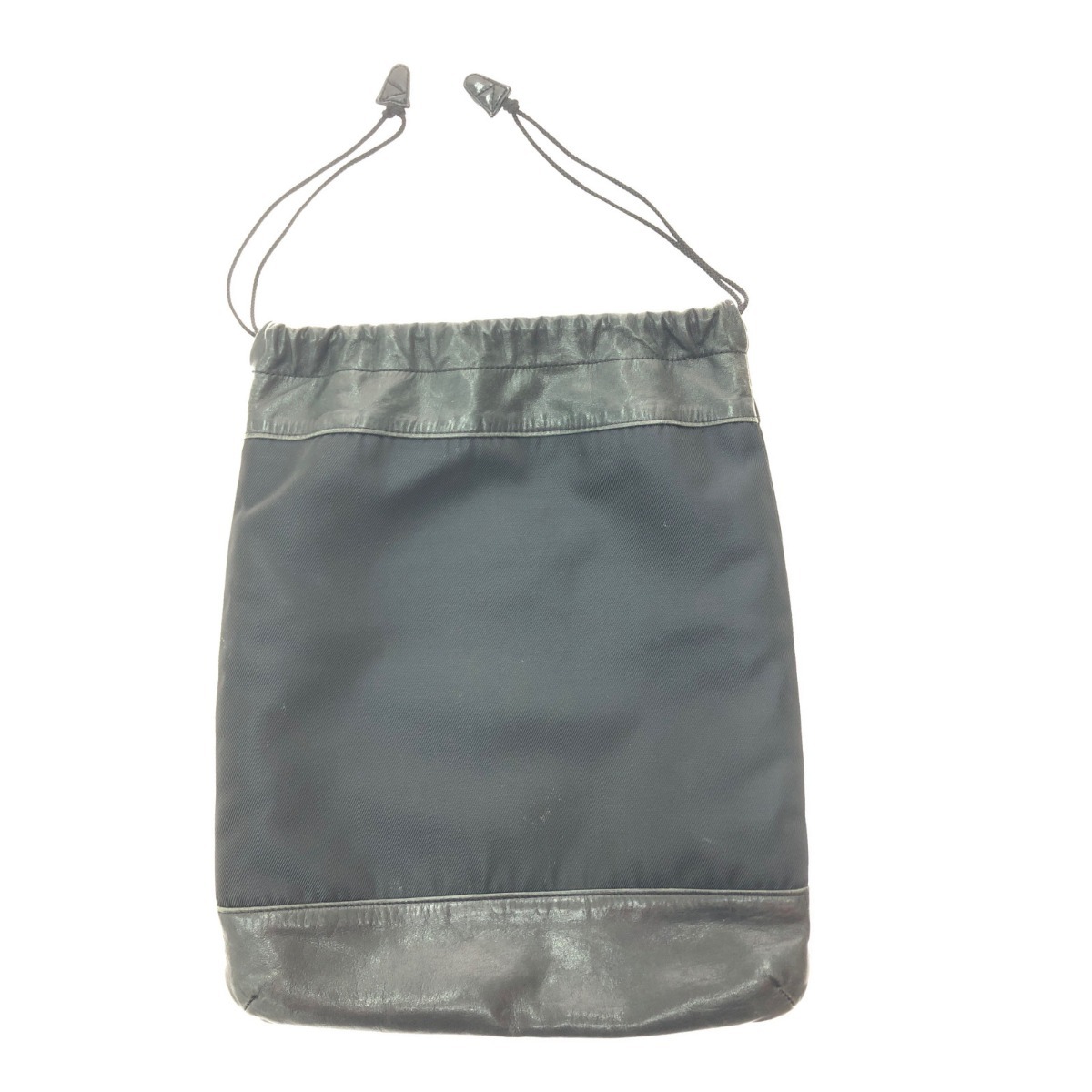 【商品名】中古 ISSEY MIYAKE イッセイミヤケ ユニセックス 巾着バッグ ショルダーポーチ ナイロン×レザー ブラック やや傷や汚れあり