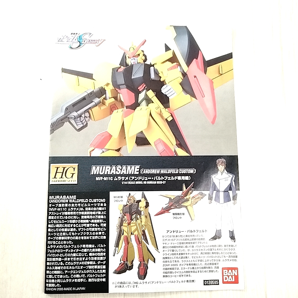 HG  1/144 ムラサメ HG MVF-M11C  Murasame  アンドリュー・バルトフェルド専用機 Andrew Barthfeld only GUPLA  TO452