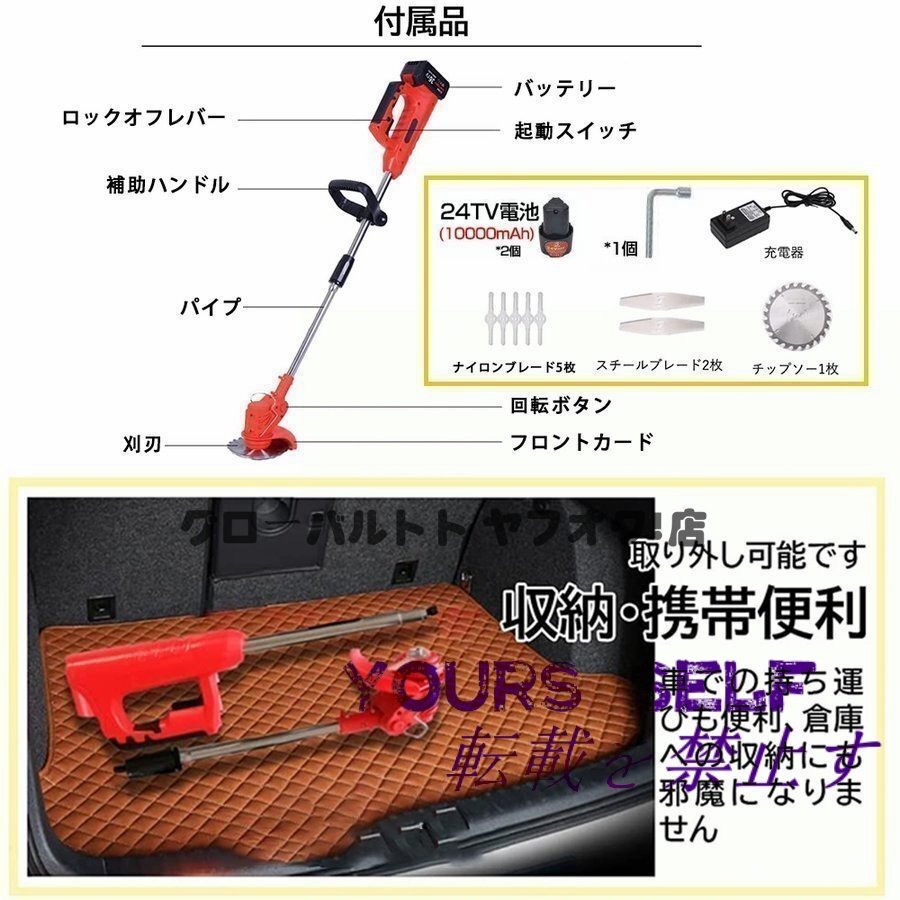超人気 充電式 草刈機 進化版 コードレスバッテリー式 伸縮角度調整 替刃付き軽量無線 安全 電池2個付き 充電式 コードレス 新品 草刈機