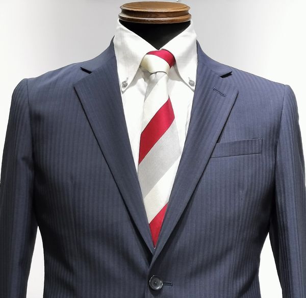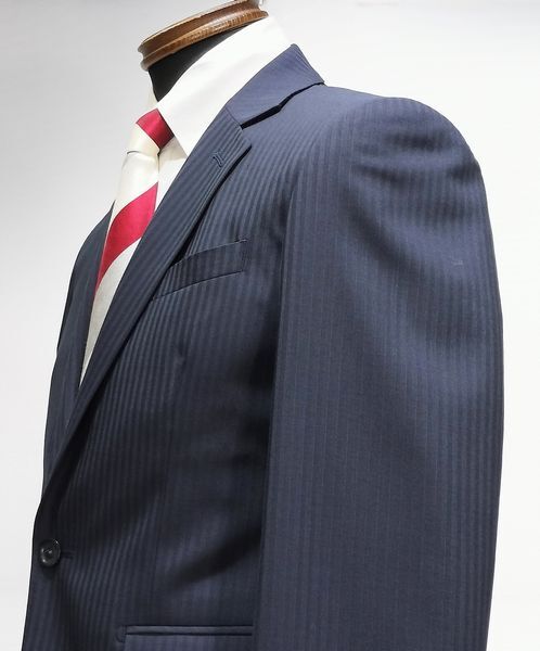 春夏■スリムタイプ■5321■マルゾット/スタィリシュ/本切羽ノータック 2つ釦ツーパン■A4■濃紺■シャドーストライプ■