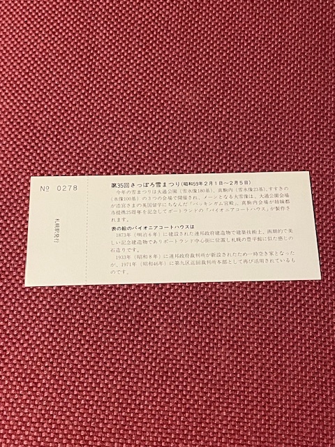 35thさっぽろ雪まつり記念入場券 札幌駅 (管理番号100-52)