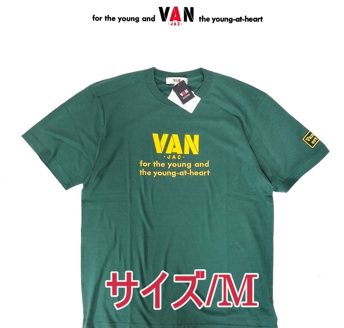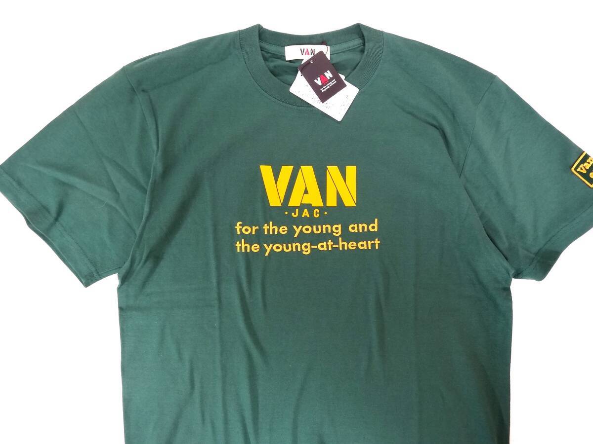 ★送料無料!! VAN JACKET ヴァンヂャケット 左袖オリジナルVANワッペン装着&定番ロゴフロントプリント コットンTシャツ M グリーン★