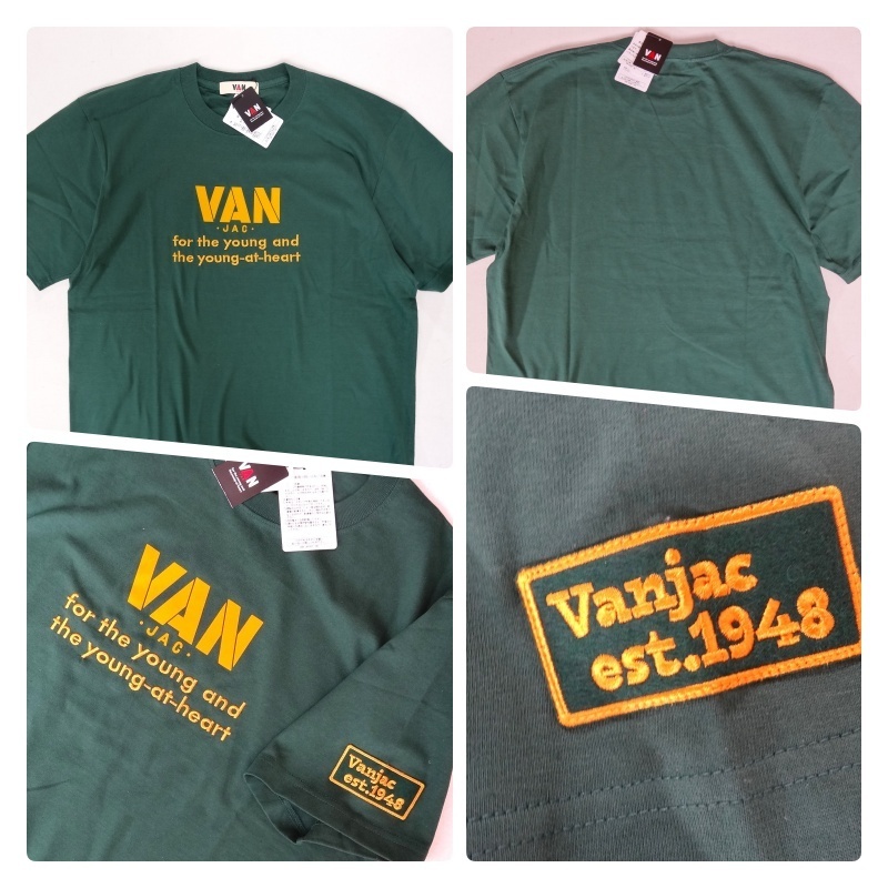 ★送料無料!! VAN JACKET ヴァンヂャケット 左袖オリジナルVANワッペン装着&定番ロゴフロント発泡プリント & 刺繍 コットンTシャツ M グリーン★