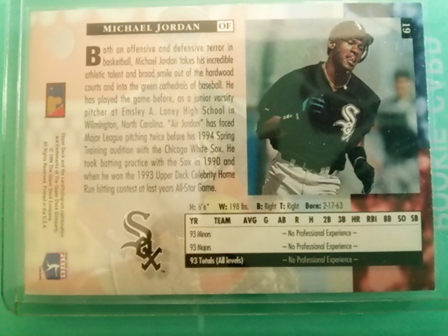 MLB メジャーリーグ マイケル・ジョーダン 45背番号 ルーキーカード Upper DECK Rookie Card 1994 ブルズ バスケットボール
