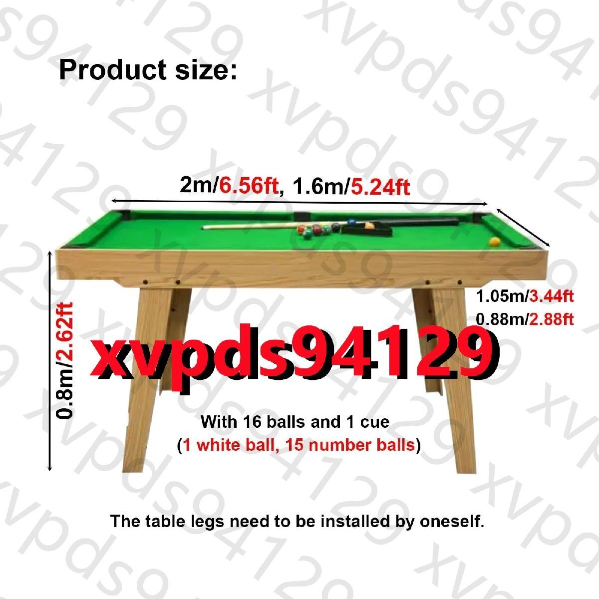 自宅で打撃スキルを練習する方法がまだわかりませんか?私たちのビリヤードトレーニングテーブルは、打撃スキルを練習するのに最適です。厚いMDFで作られたビリヤードテーブルは非常に頑丈です。 ほぼすべてのパーツが組み立てられており、すぐに遊ぶことができます。当社のビリヤード台セットには、必要なゲームアクセサリーがすべて揃っており、耐久性のある素材により、このビリヤード台は長期間使用できます。標準的なビリヤード台と同じように、本物のフェルトのカバーとクッションを備えたコンパクトなデザインでスペースを節約します。このビリヤードトレーニングテーブルは、リビングルーム、寝室、家庭用ゲームルーム、エンターテイメントルーム、地下室、ガレージに適しています。経験豊富なプレイヤーでも、ビリヤードを始めたばかりの方でも、ビリヤードテーブルを使って練習することができます。製品パラメータ。名前: ビリヤードトレーニングテーブルビリヤードテーブル素材: 高密度ボードテーブルトップ素材:ベルベットフェルトテーブル脚の材質:MDFメッシュバッグ素材:ナイロンネットサイズ: 2.1x0.54m/6.88x1.77フィート、2.41x0.54m/7.9x1.77フィート特徴: ポータブル、頑丈な構造、簡単に保管できます。梱包リスト:1 * ビリヤード台1 * テーブル脚1 * ビリヤードキュー+ボール知らせ:手動測定のため、サイズの若干の誤差はご了承ください。詳細は実際に届いた商品をご確認ください。