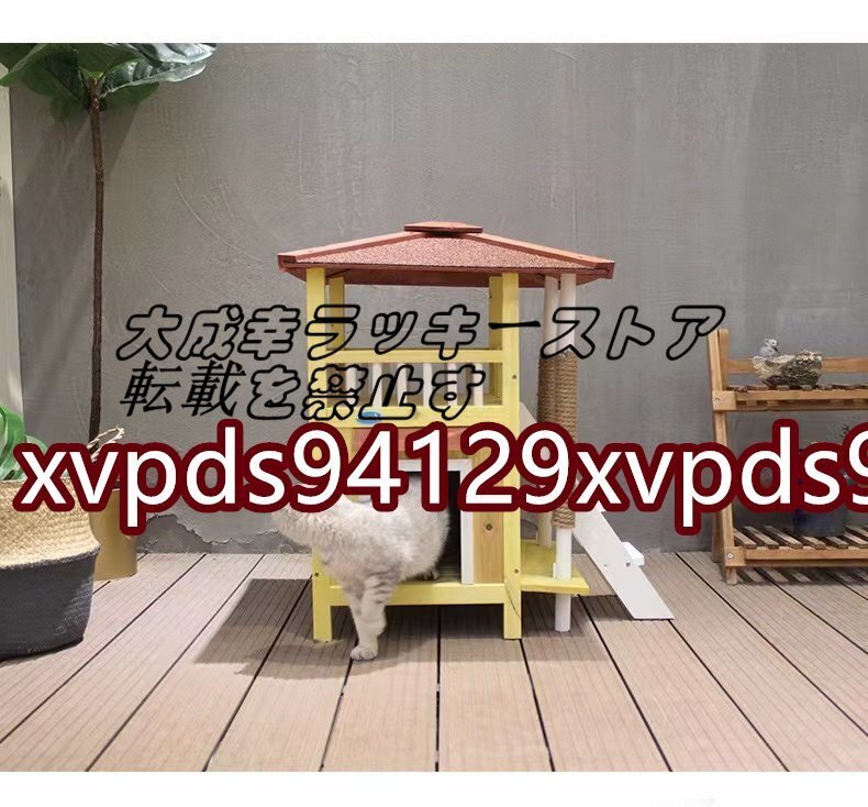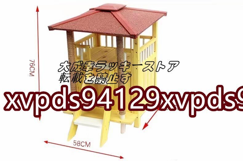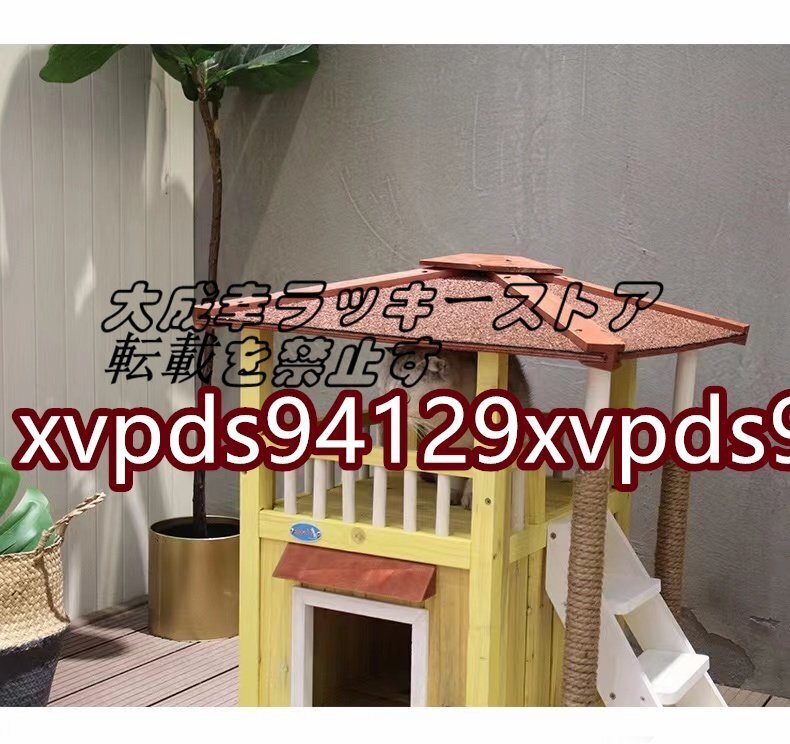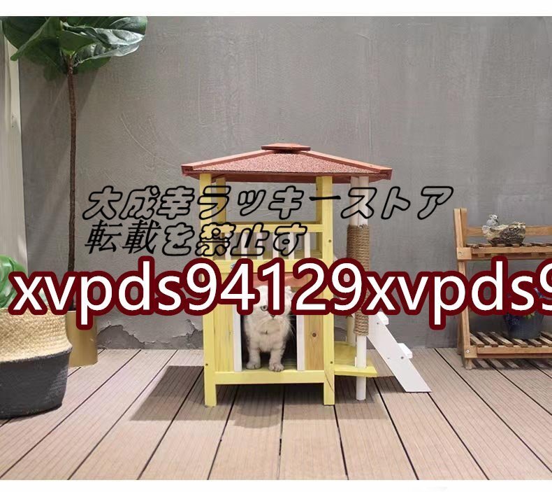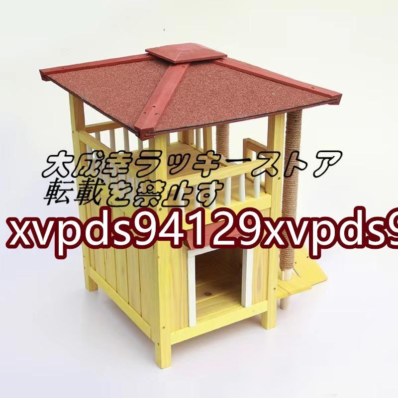 大好評★猫部屋 猫用豪華別荘 ソリッドウッド製 猫舎 キャットタワー 室外猫ハウス 二段ケージ 環境に優しいデザイン z597