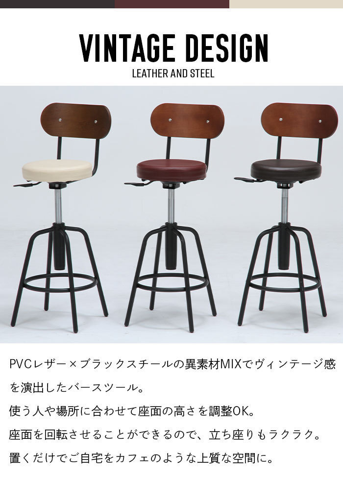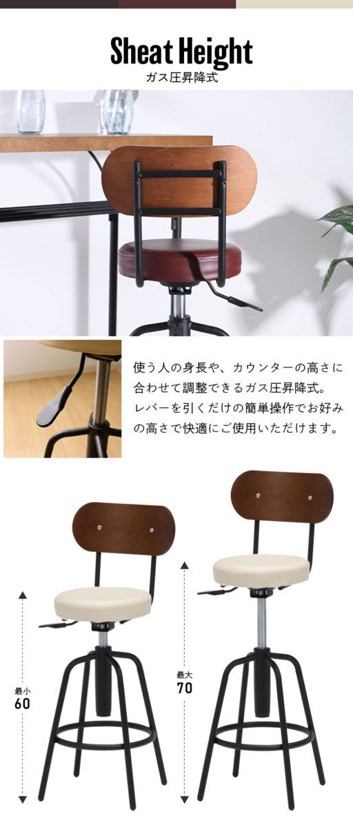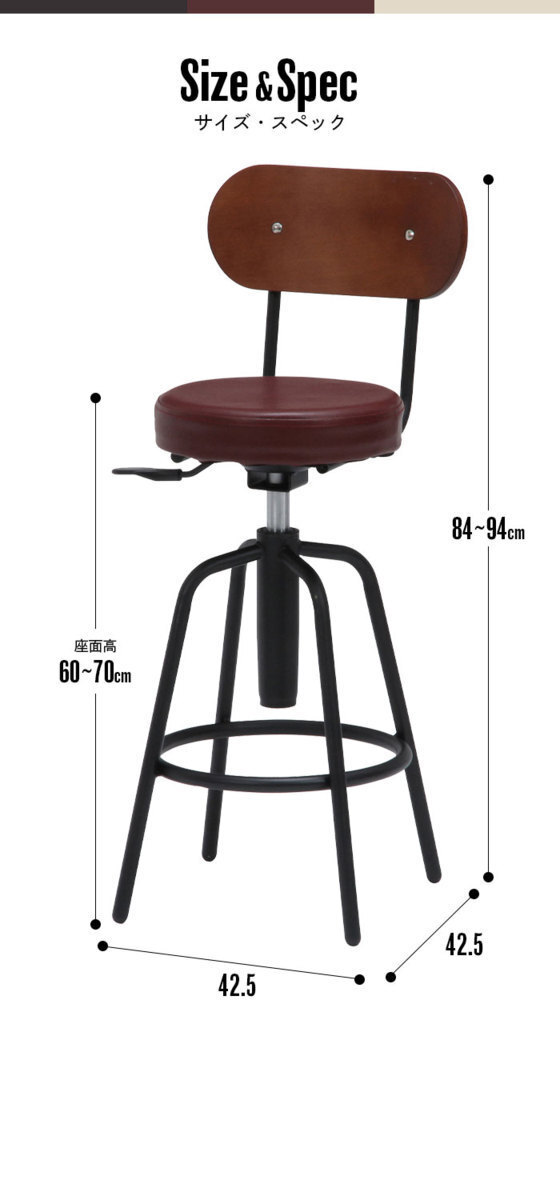 | 商品名: | バースツール 背付 スツール アンティーク調 カウンターチェア ガス圧昇降 高さ調節 チェアー 椅子 レトロ ブラウン M5-MGKFGB90035BR |