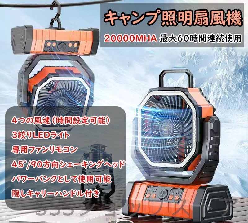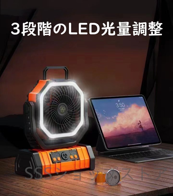 ■20000mAhの多機能扇風機、大容量、LED照明付き、上下隠しフック付き、アウトドアキャンプや野外の集まりに最適です。