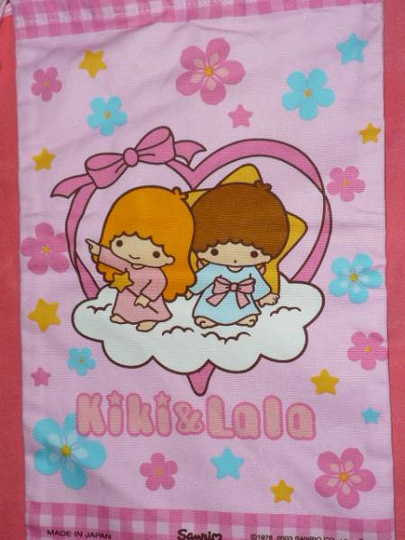 ☆商品説明☆ご覧いただきありがとうございます^^ サンリオキャラクター キキララのきんちゃく袋バッグ(シューズケース)です。2003年、日本製。キキとララの絵柄でと~ってもかわいいですよ^^大きさはタテ 約31cm、ヨコ 約19.5cmです。たいへん古いものですがコレクション用として袋に入れたまま大切に保管していましたので新品、未使用ですが、写真2枚目の左上部分に薄く黄色くなっている箇所がありますのでご理解いただける方のご入札をお願い致します。 ☆発送方法☆ 定形外郵便、ゆうぱっく ☆コメント☆ ノークレーム、ノーリターンでお願いします。ご不明な点がございましたらお気軽にお問合わせ下さい。他にもリトルツインスターズキャラクターグッズたくさん出品しております☆ 良かったらご覧下さいね*^^*
