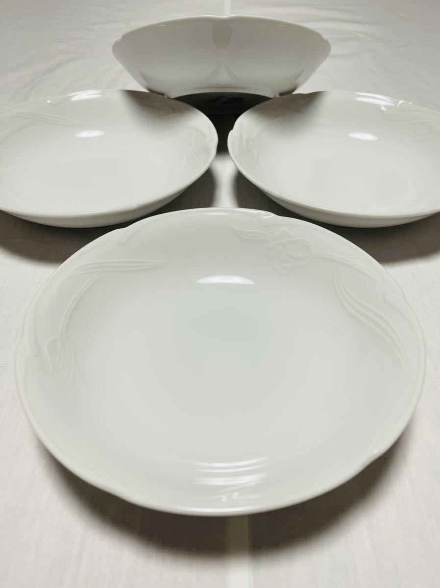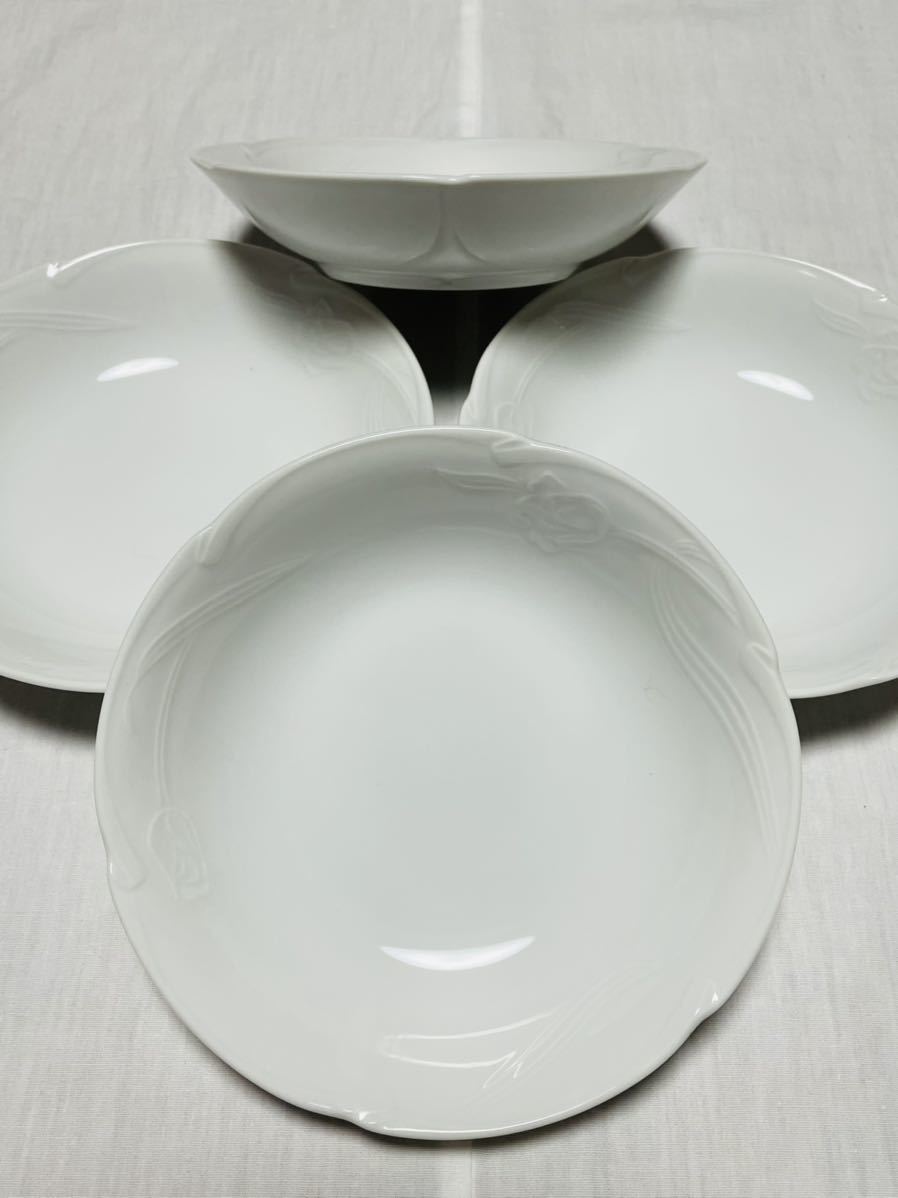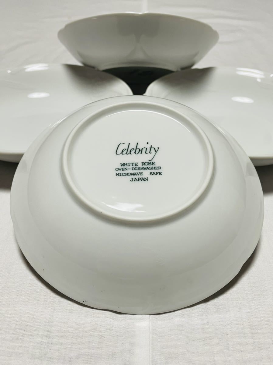 アメリカブランド Celebrity のwhite roseシリーズのフルーツボウル、お皿4枚
