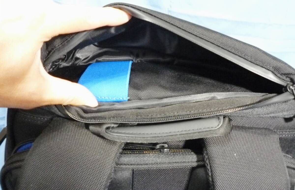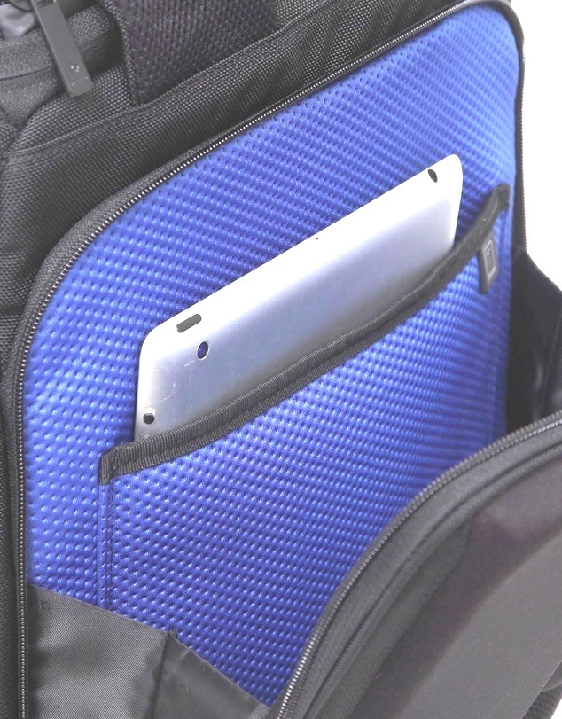 ●15.6インチPC対応の独立した収納部。PCなどを保護するブルーカラーの裏地が付いた、パッド入りの PC収納部。