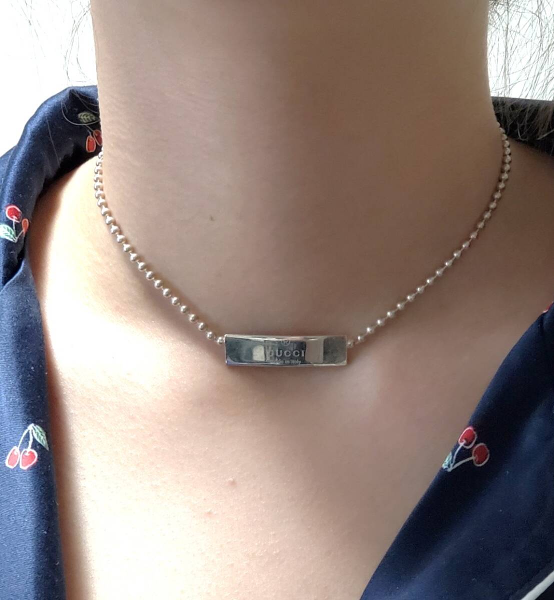 ●GUCCI グッチ●SILVER 925刻印 シルバー925刻印 ブランド ロゴプレート チョーカー アクセサリー レディース 33㎝ 11,2g きれいめ