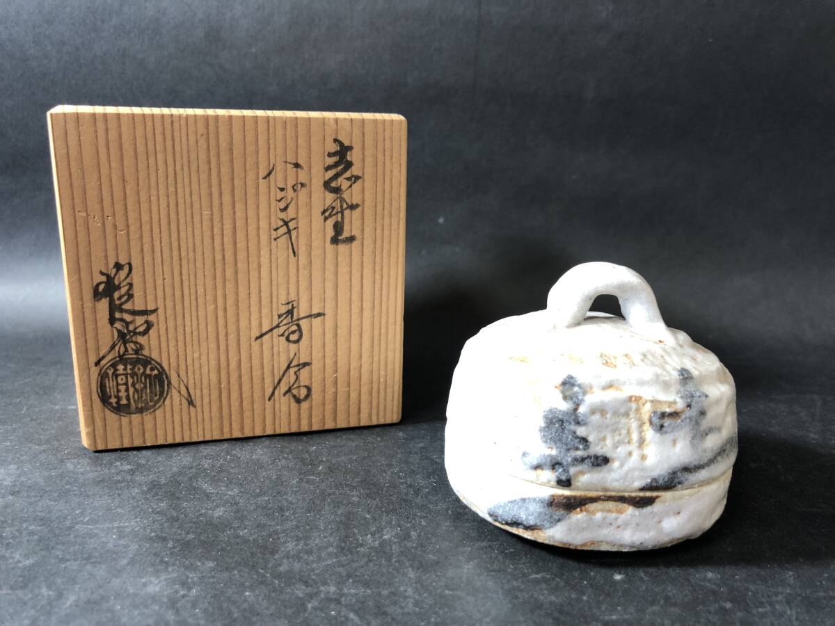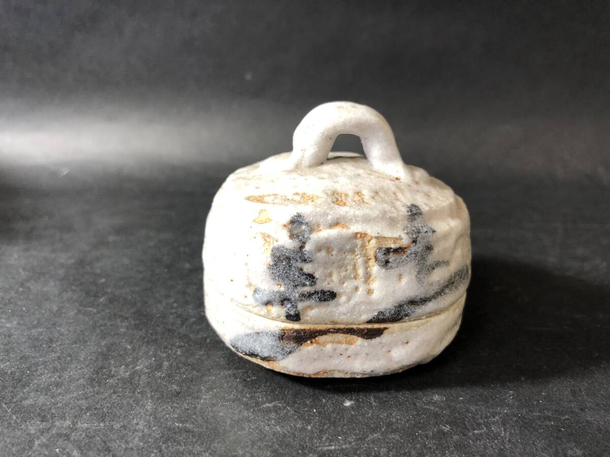 茶道具 山口錠鉄 志野焼 ハジキ香合 未使用 美品 茶道具 表千家 裏千家 共箱 店舗保管品