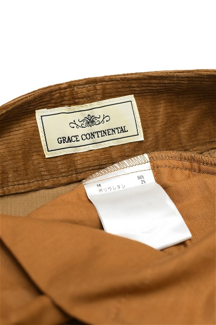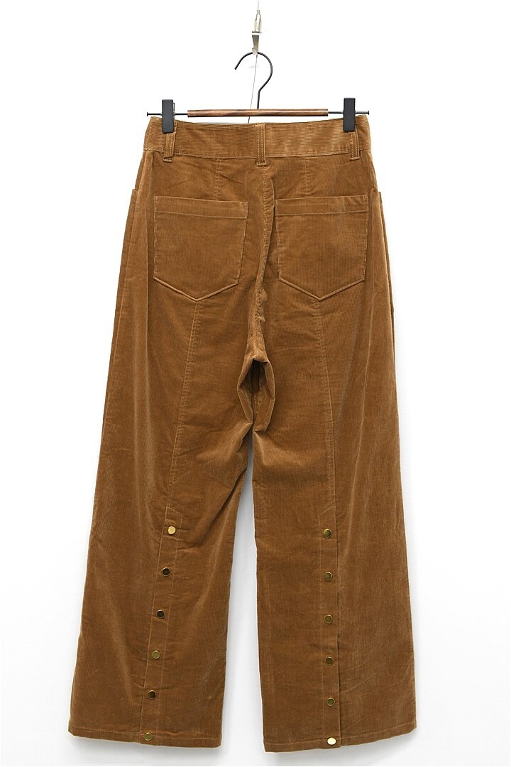 O334/GRACE CONTINENTAL コーデュロイワイドパンツ 裾ボタン 金ボタン ストレッチ 36 S ブラウン カジュアル
