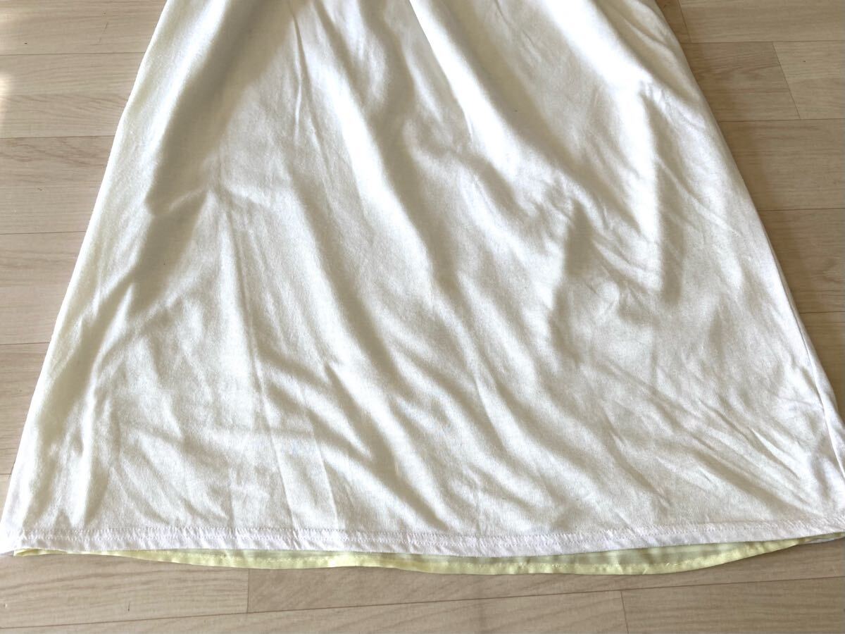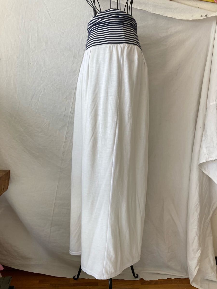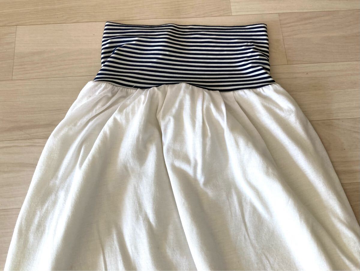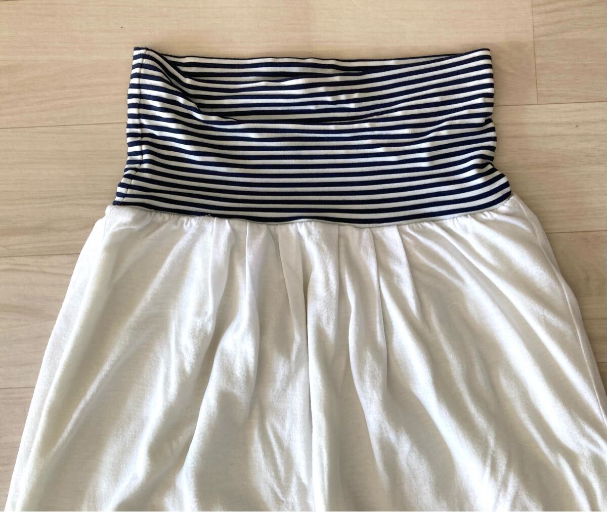 LHELBIE ストライプバンド付きのホワイトロングスカート、柔らかい生地でフレアシルエット。