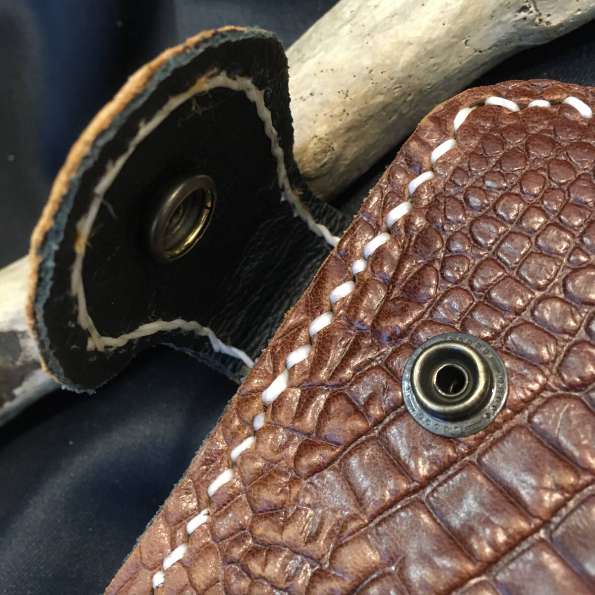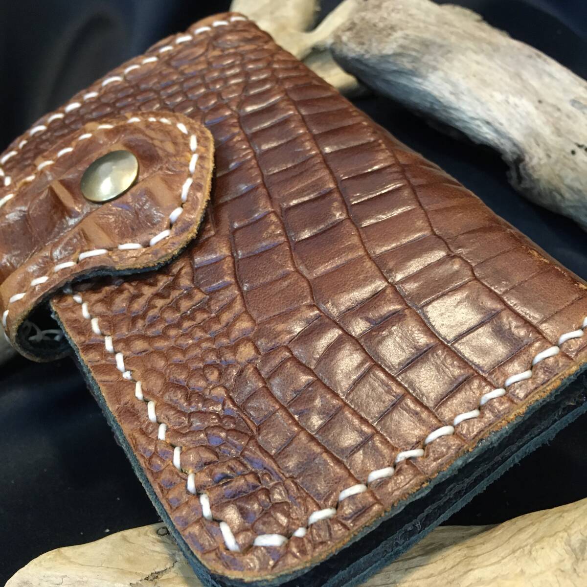 ワニ型押し牛革製ハーフ長財布になります。簡易的な財布になります、仕事やアウトドアなどでご使用ください。