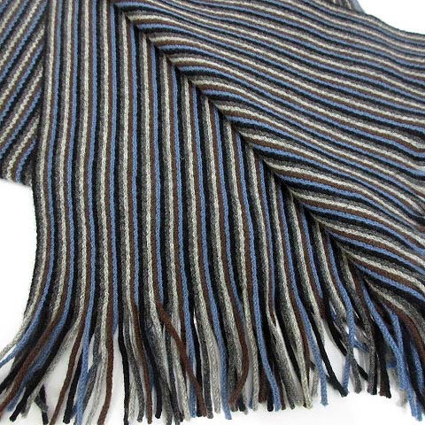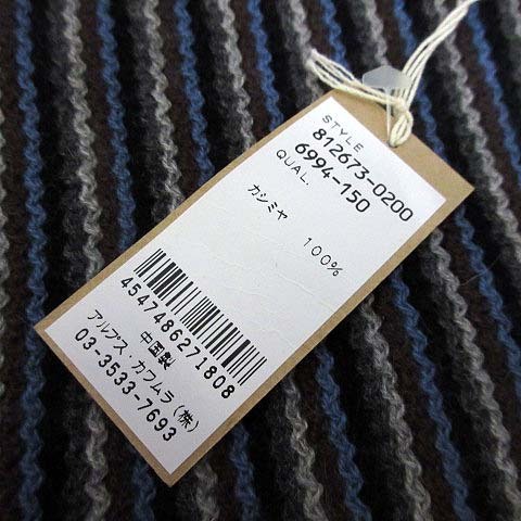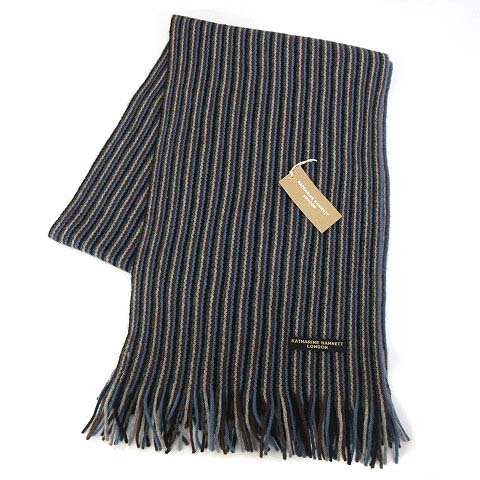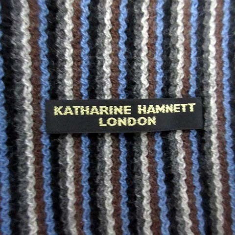 未使用品 キャサリンハムネットロンドン KATHARINE HAMNETT LONDON カシミヤ100% ストライプ マフラー ブルー系