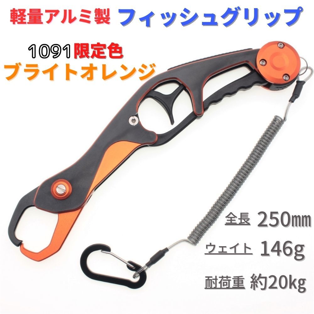 【送料無料】1091 超軽量 アルミ製 フィッシュグリップ 限定色 ブライトオレンジ 魚掴み器 フィッシュキャッチャー