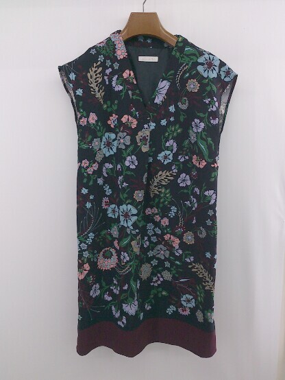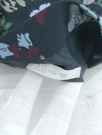 ◇ AG by aquagirl Vネック 花柄 オトナ女子 ノースリーブ ミニ ワンピース サイズM ネイビー マルチ レディース P