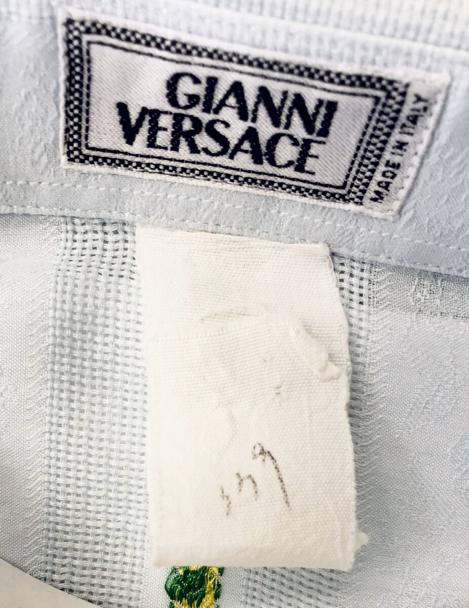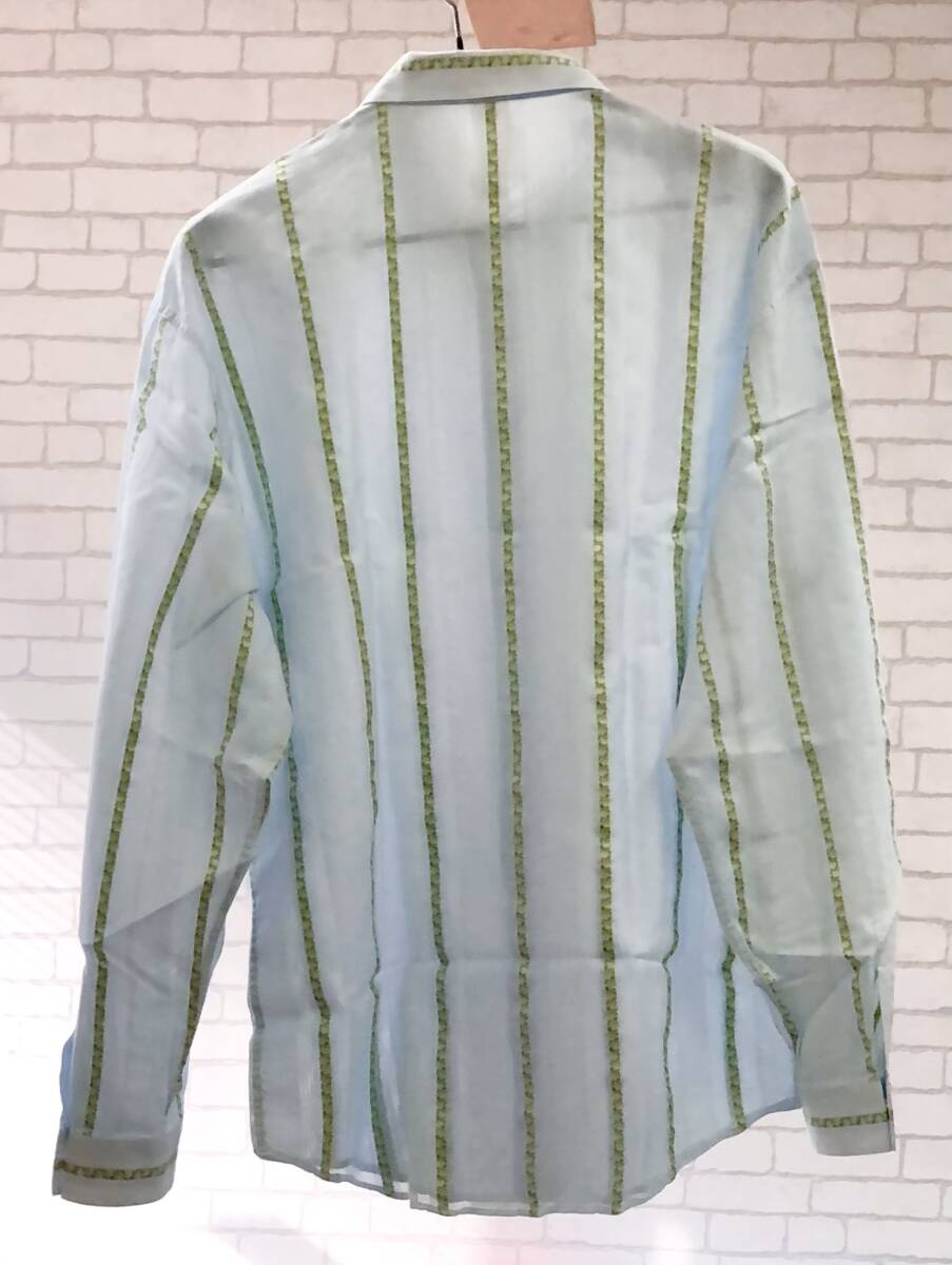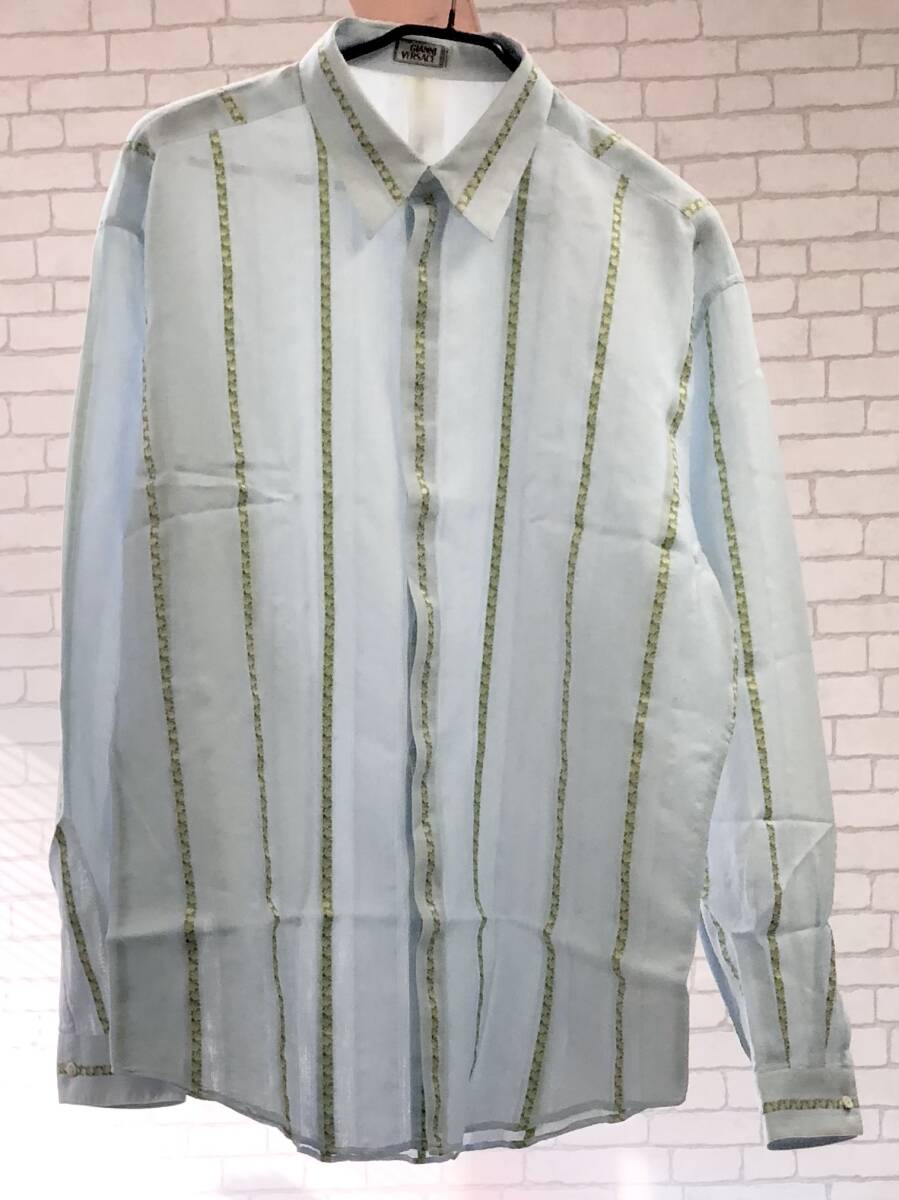 [AHB]12-USED GIANNI VERSACE(ジャンニ・ヴェルサーチェ) 長袖シャツ(水色/花のライン/サイズ52/メンズ)