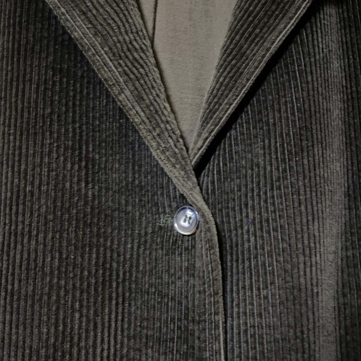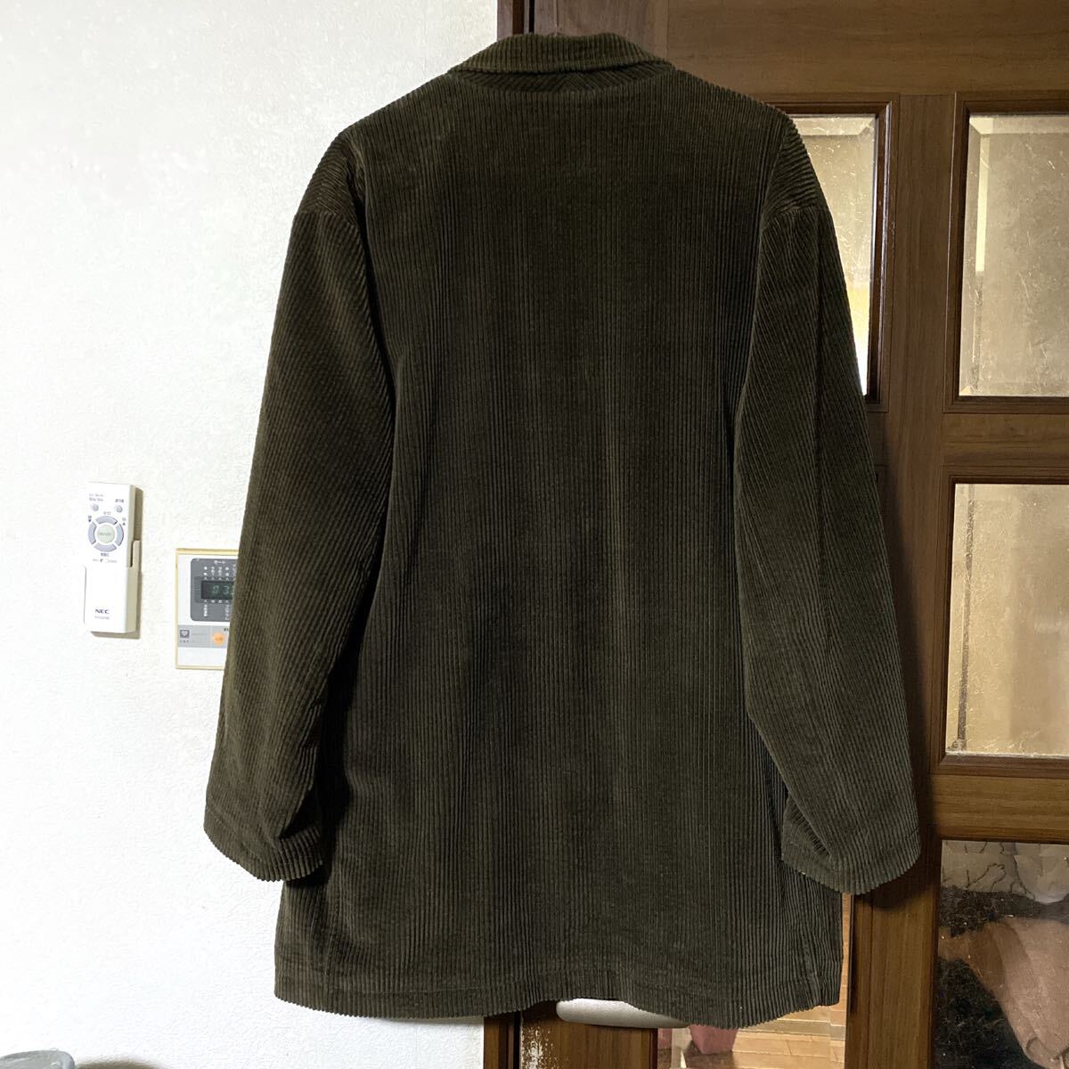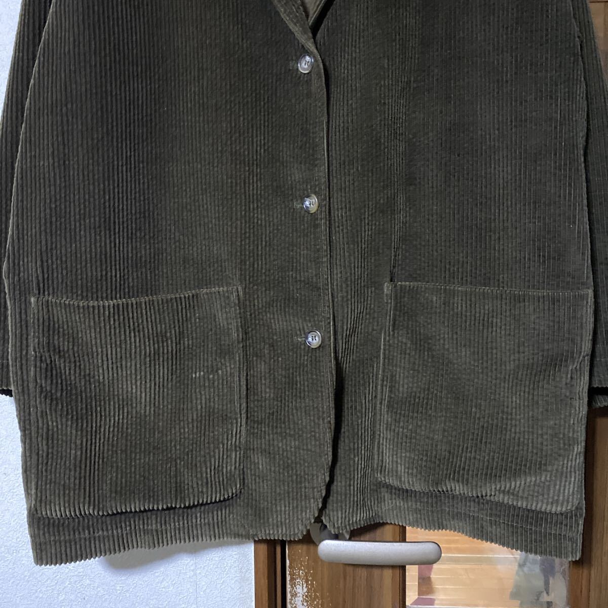 ブラウンの太畝コーデュロイに柔らかな質感でゆったりと自然に肩を落として着ることができハーフコートのように羽織れます
