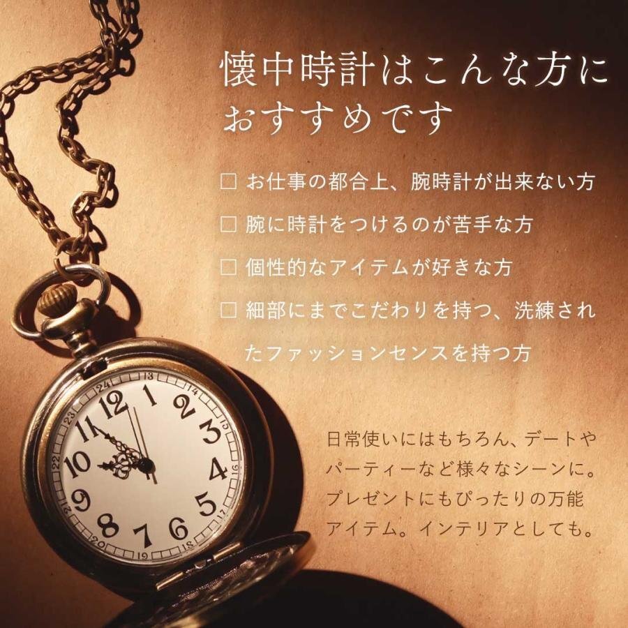 その上品で訴えかけるような魅力、現代の時計とは一線を画した外観やデザインの違い、また細部にわたる作りやデザインの良さも相まって、アンティーク風懐中時計はその美しさを語りかけるように訴えかけてきます