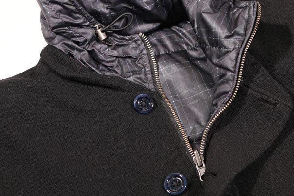 商品詳細 | 商品番号:28945 色:ブラックxネイビー 柄:チェック ■made in ITALY ■フード取り外し不可 ■カシミヤ混 |