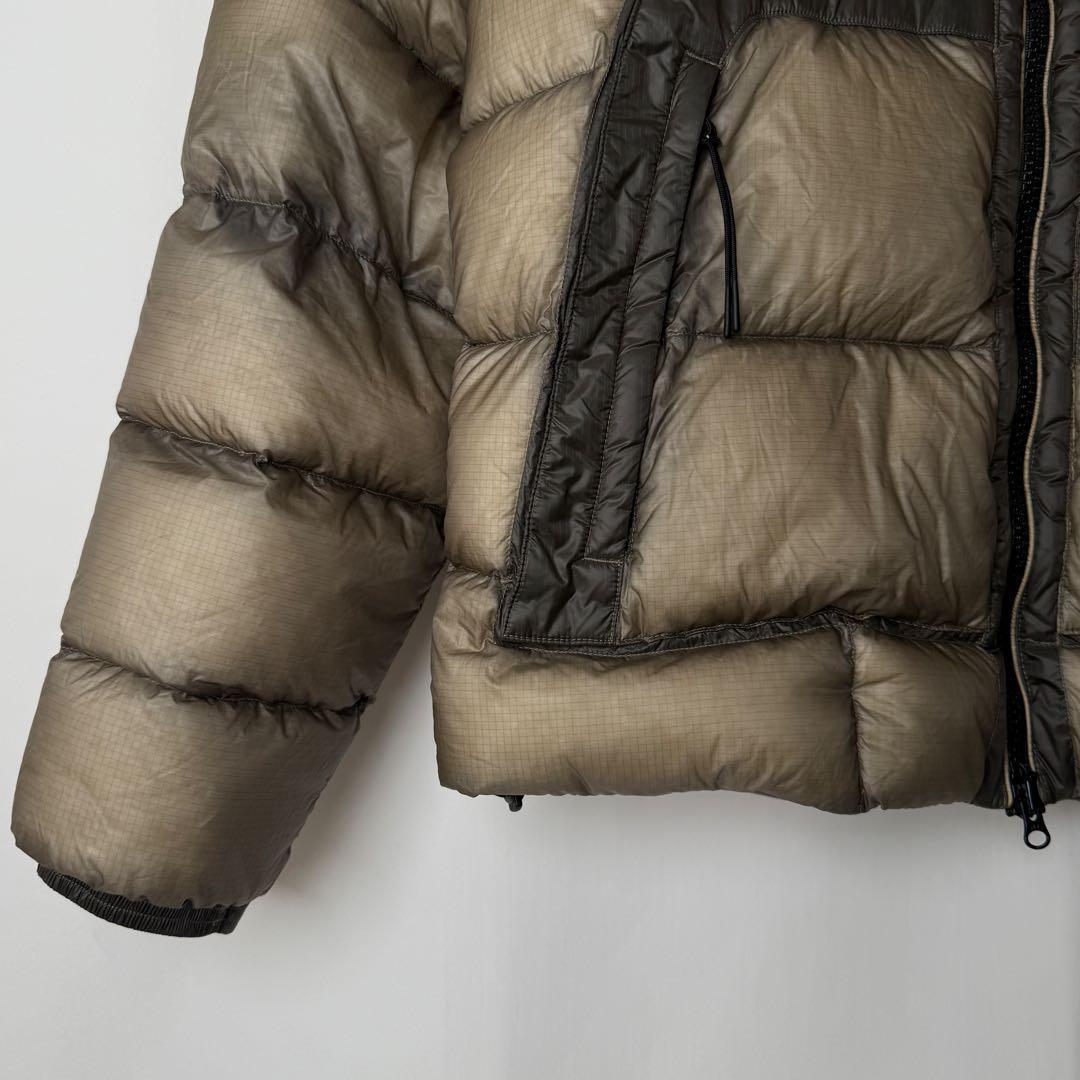 フードが付いたショート丈のダウンジャケット。7デニールのマットなマイクロリップストップナイロン、D.D. Shellを使用しています。生地の軽やかさと透明感により、ウェアの構造が際立つモデルです。ダウンはダイレクトインジェクションにより注入。