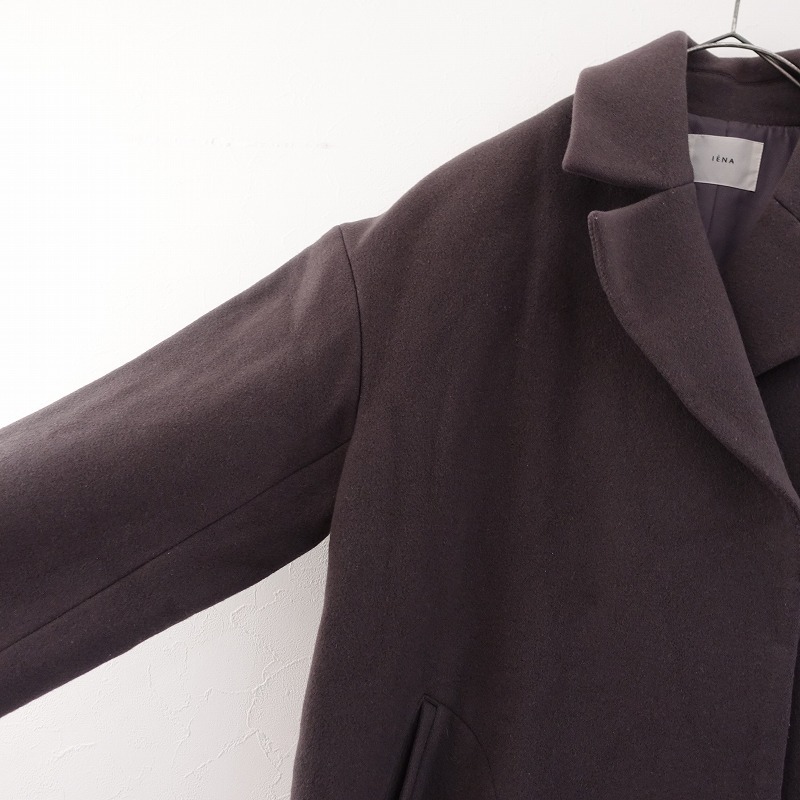 | IENAのMANTECO オーバーチェスターコートです。カラーはダークブラウンで、MANTECOというイタリアのインポート素材で仕立てられており、裏地が付いております。前開きにはブラインドスナップでミニマルに仕上げられており、ダブルで留めても、シングルで留めでもどちらでもご利用いただけます。両腰にポケット付き、定価(メーカー希望小売価格)49,500円 税込みの商品です。 |