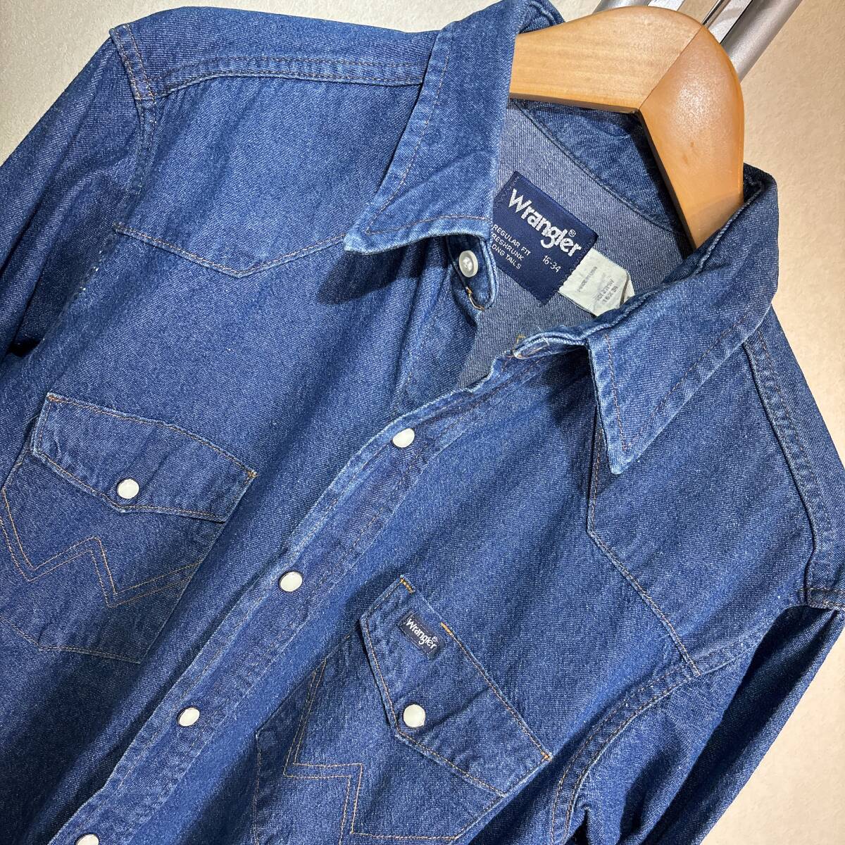 | X355■USA製古着★80s★Wrangler/ラングラー★70127MW★インディゴデニム★ウエスタンシャツ■US 16 | ||||||||||||||||||||