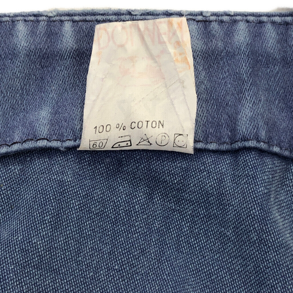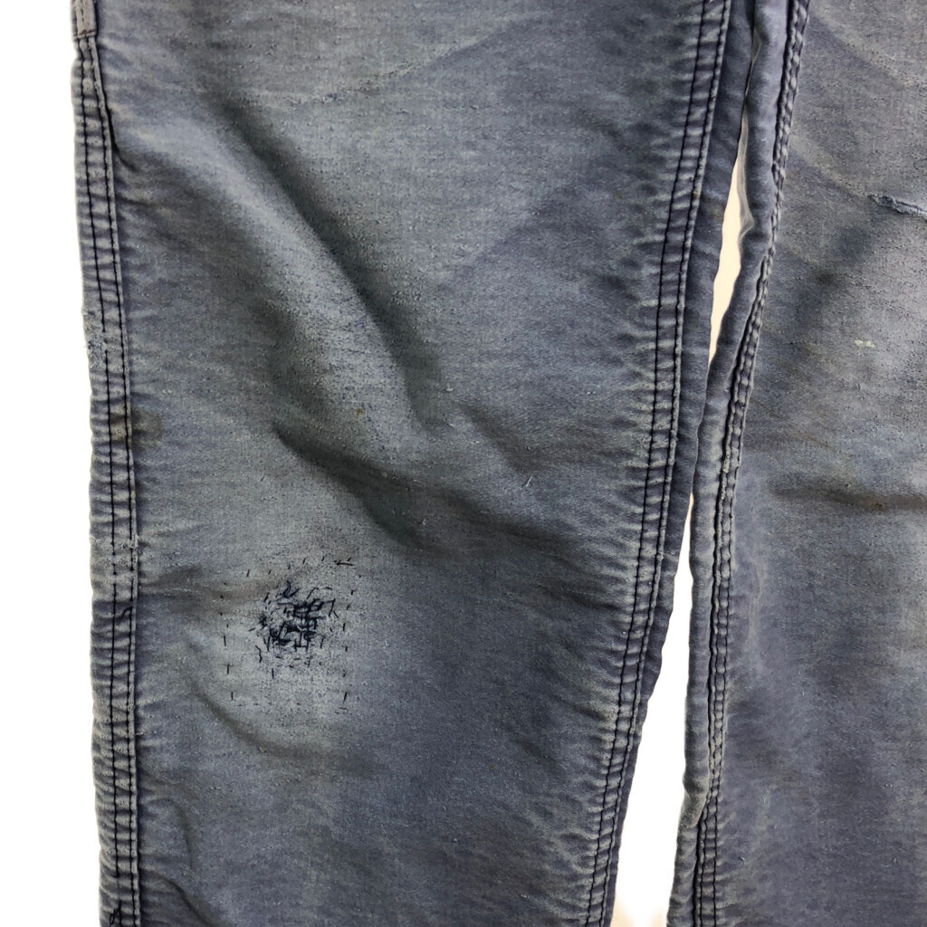 | [商品管理番号] S8116 [サイズ] 44 [実寸サイズ] 総丈:約126cm ウエスト:約84cm 股上:約32cm 股下:約75cm わたり幅:約29cm 裾幅:約19cm [主な素材] 表地 : コットン [色] ブルー [仕様] 生産国 : フランス製 80年代 モールスキン ユーロ、ワーク フレンチワーク [状態] 汚れ:胸、もも、ひざ、ふくらはぎ キズ:もも、ひざ、スネ 特記事項:色褪せ、リペア跡、変色、金具錆び | |||