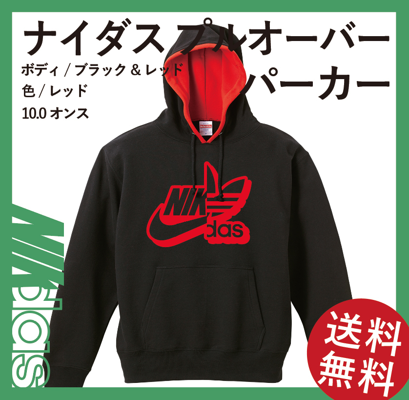 送料無料 ナイダス フードパーカー ブラック&レッド×レッド XLサイズ