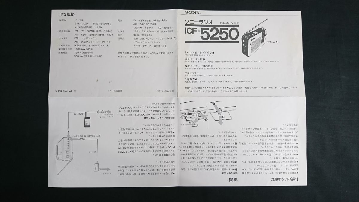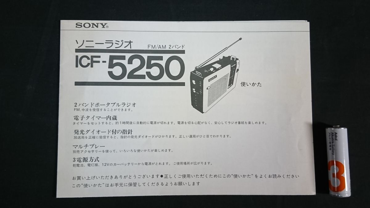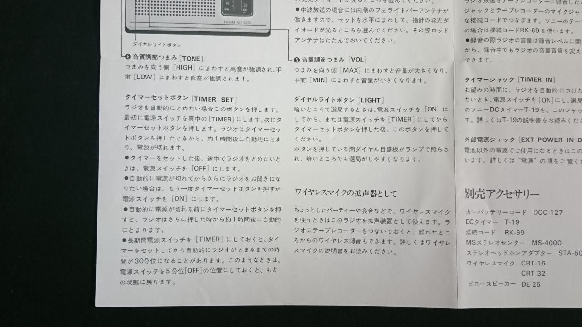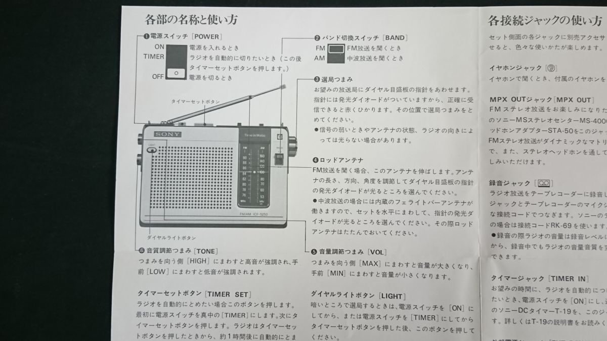 【昭和レトロ】『SONY(ソニー) FM/AM 2バンド ラジオ Time in Matic ICF-5250 使いかた(取扱説明書)』昭和49年頃 ソニー株式会社 | |||
