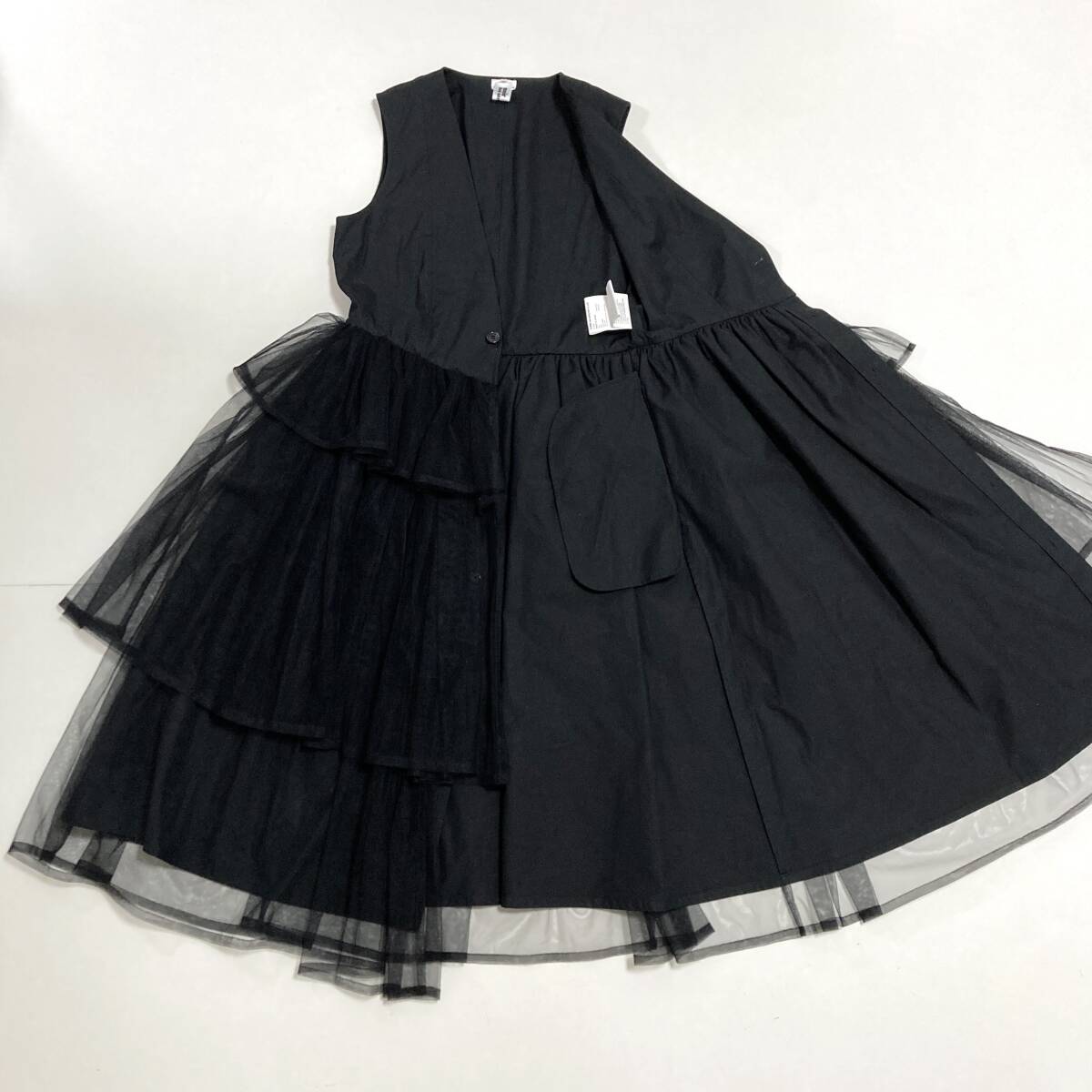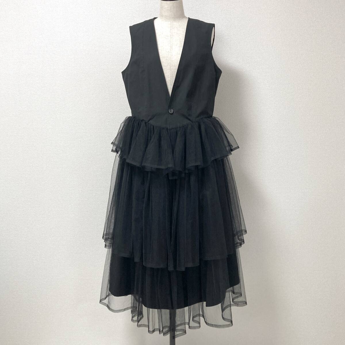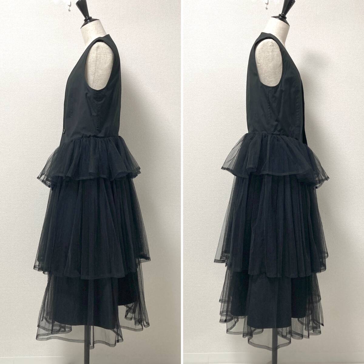 Noir Kei Ninomiya チュール ティアード ノースリーブ ワンピース ブラック Lサイズ ノワール ケイニノミヤ ジレ ドレス archive 4110343