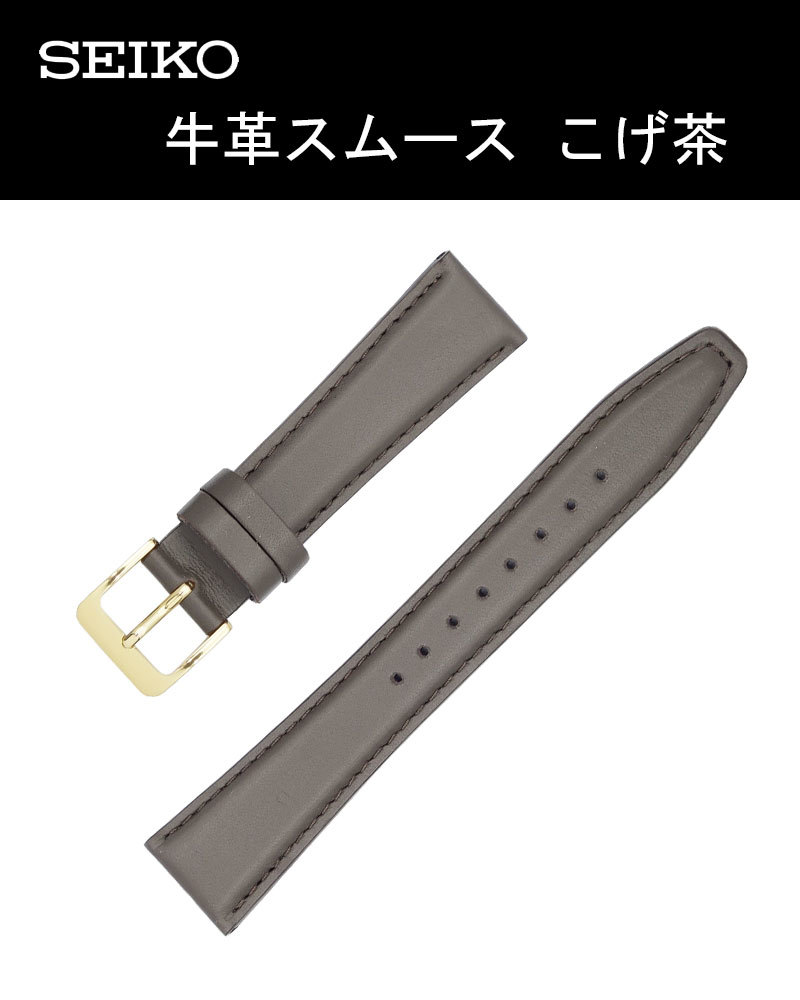 新品未使用国内正規品 牛革スムース メーカー:セイコー メーカー品番:DXJ1 希望小売価格:2,500円+税 カン幅:19mm 美錠幅:15mm 厚み:3.5mm 長さ:美錠側 70mm(美錠含まず) 剣先側 115mm 色:こげ茶 裏材:テグラン 形状:甲丸タイプ 美錠材質:アルミ 現在金色の尾錠がついておりますが、御希望で銀色に交換させていただきます。 尾錠のデザインが変わる場合があります。 特にご連絡がない場合は写真の現状の金色での発送となります。 | ||