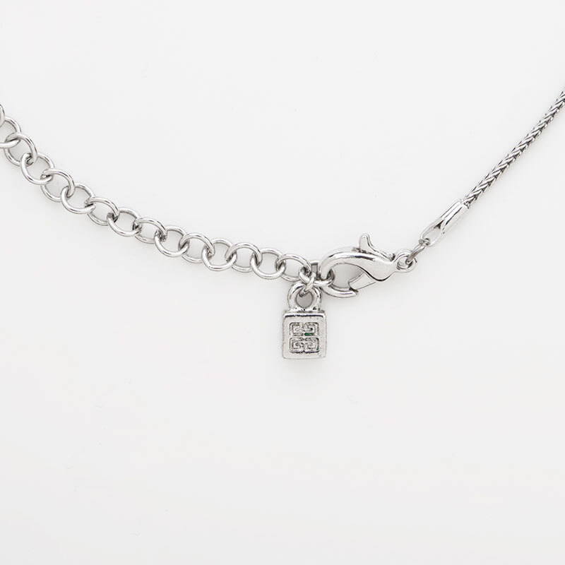 極美品 GIVENCHY Gロゴ ラインストーン ネックレス シルバー