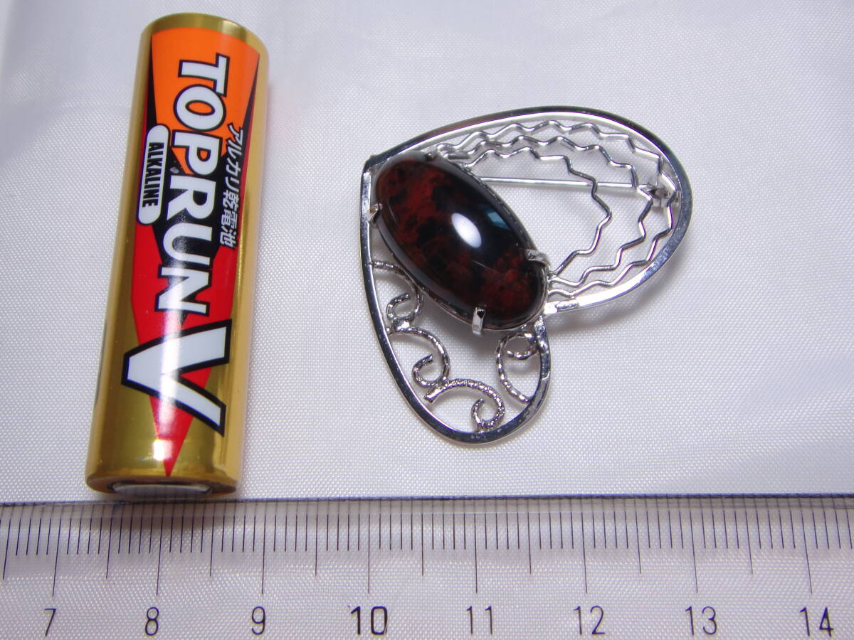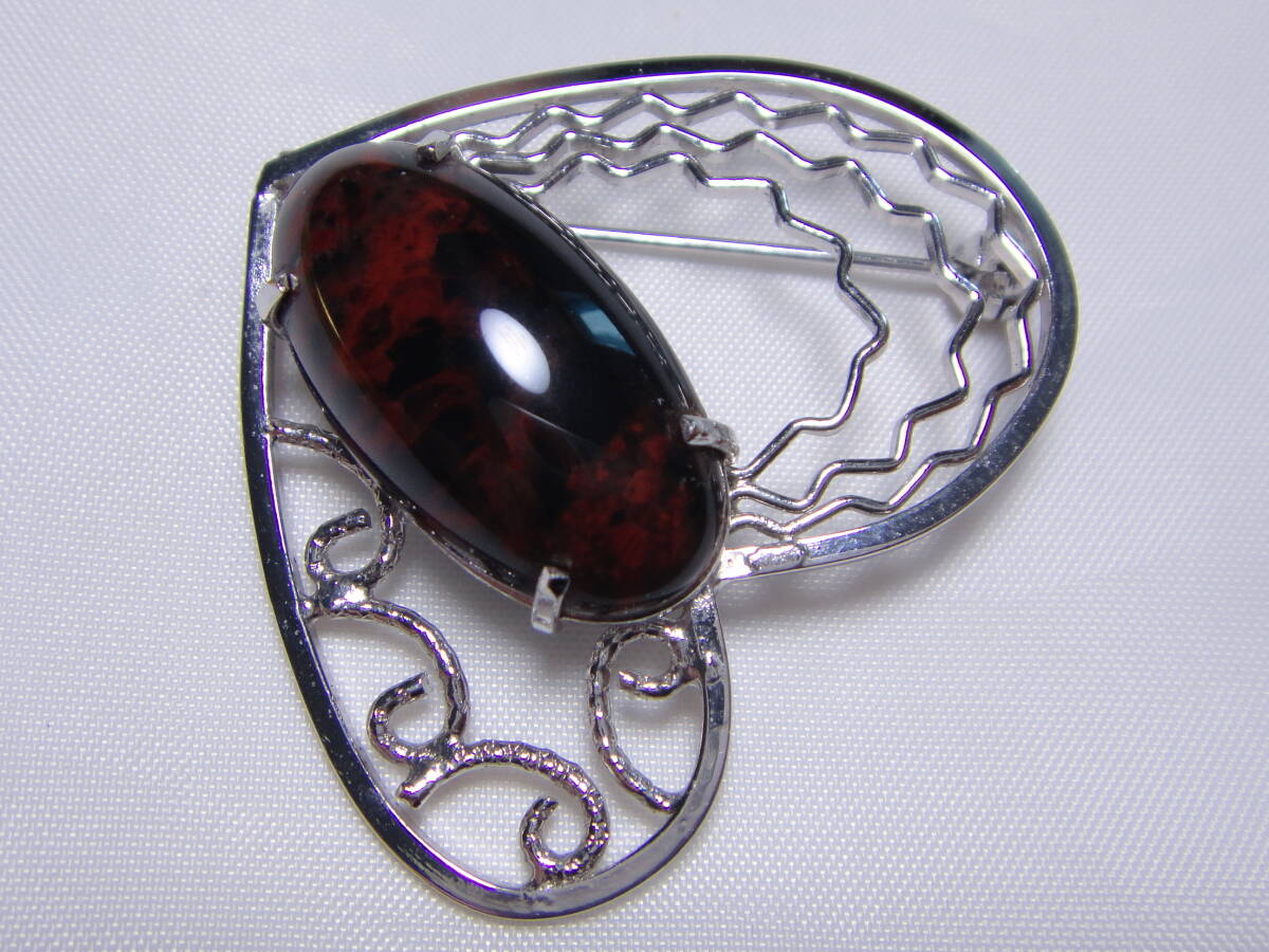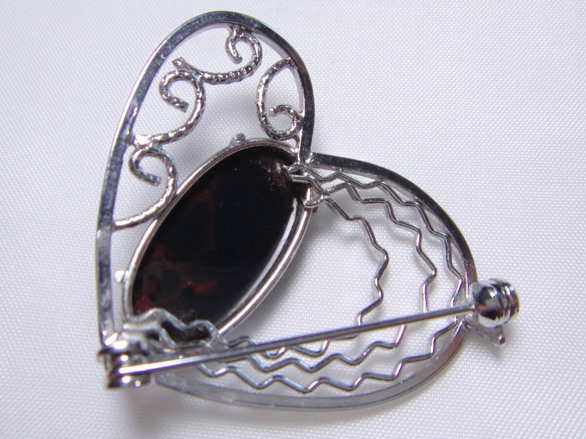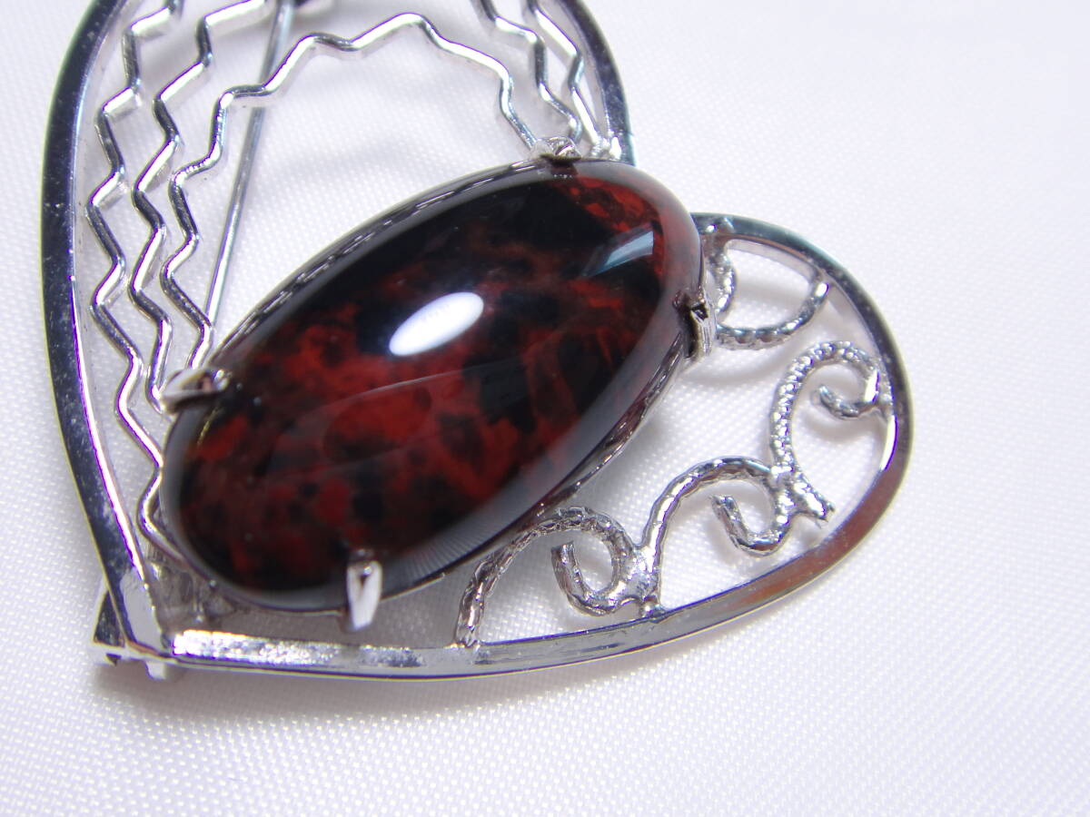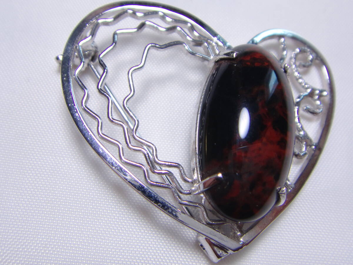 天然石 マホガニーオブシディアン 大粒! ブローチ ハートデザイン 良品 ヴィンテージ 服飾小物 B953