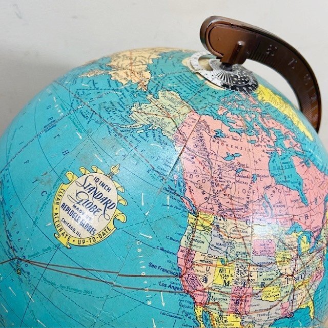 アメリカにて購入した古い地球儀です。