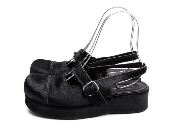 | トリココムデギャルソンtricot COMME des GARCONS ハラコレザープラットフォームサンダル 黒23 |