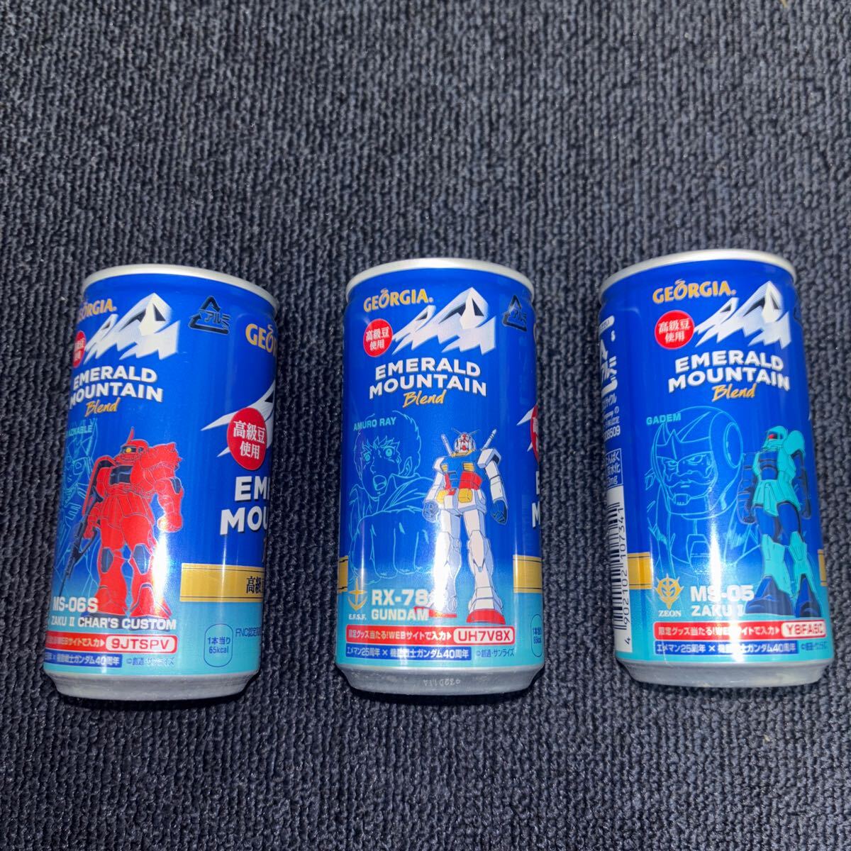 25周年×機動戦士ガンダム40周年 ガンダム シャアザク 旧ザク デザインの3缶セットになります。