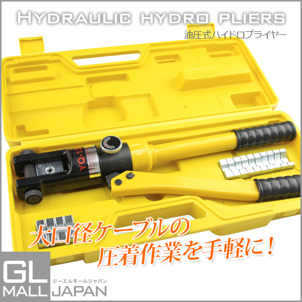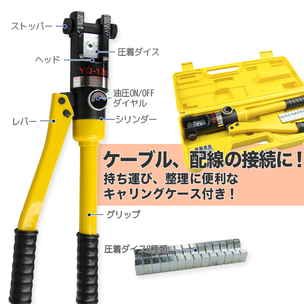 【20%OFF】油圧式圧着工具ハイドロプライヤー 最大能力8t ヘキサゴンダイス8種 専用ケース付 仮押さえ 圧着 油圧 工具 ケーブル 配線 接続